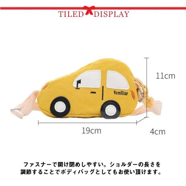 | 子供に大人気の車をモチーフにしたキッズショルダーバック。 車の形がかわいくいつものコーデのアクセントに!軽量だからキッズにぴったり。 お友達の家に遊びに行くなど、普段使いにちょうどよい大きさです。 ファスナーで開け閉めしやすい。ショルダーの長さを調節することでボディバッグとしてもお使い頂けます。 肩にかけたりまわしたりその日の気分で持ち方を変えられます。 | |