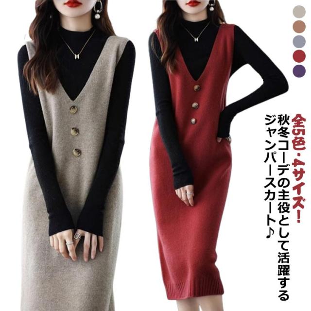 | 全5色・4サイズ!秋冬コーデの主役として活躍するジャンパースカート♪ おしゃれな深Vネックデザインはネックラインをエレガントに演出してくれます。 生地は柔らかく通気性があり、滑らかな肌触りでシワになりにくいのが特徴です。 なAラインシルエットのアイテムで、着こなしの幅が広いのも嬉しいポイント。 ブラウスを合わせればフェミニンに、シンプルなカットソーならナチュラルな雰囲気で着こなせます。 | |