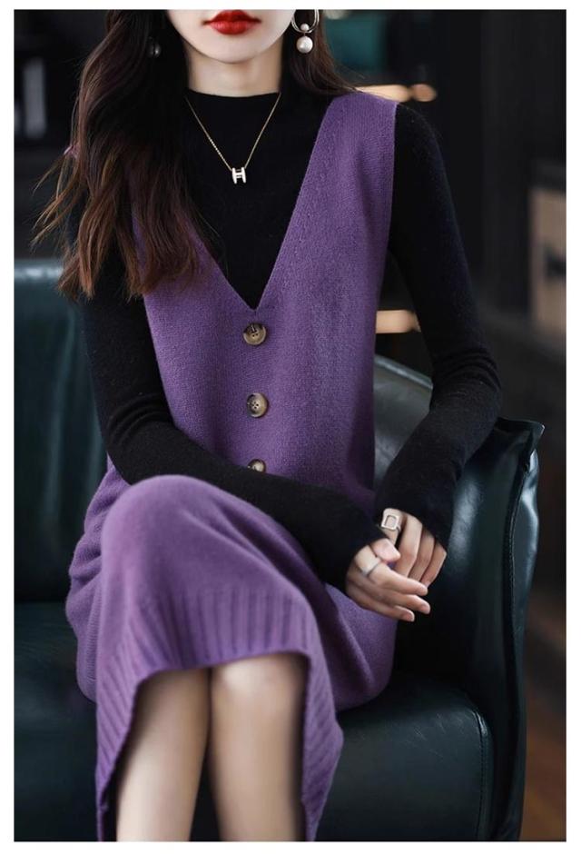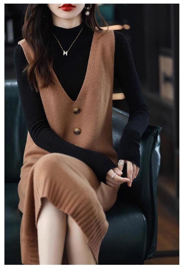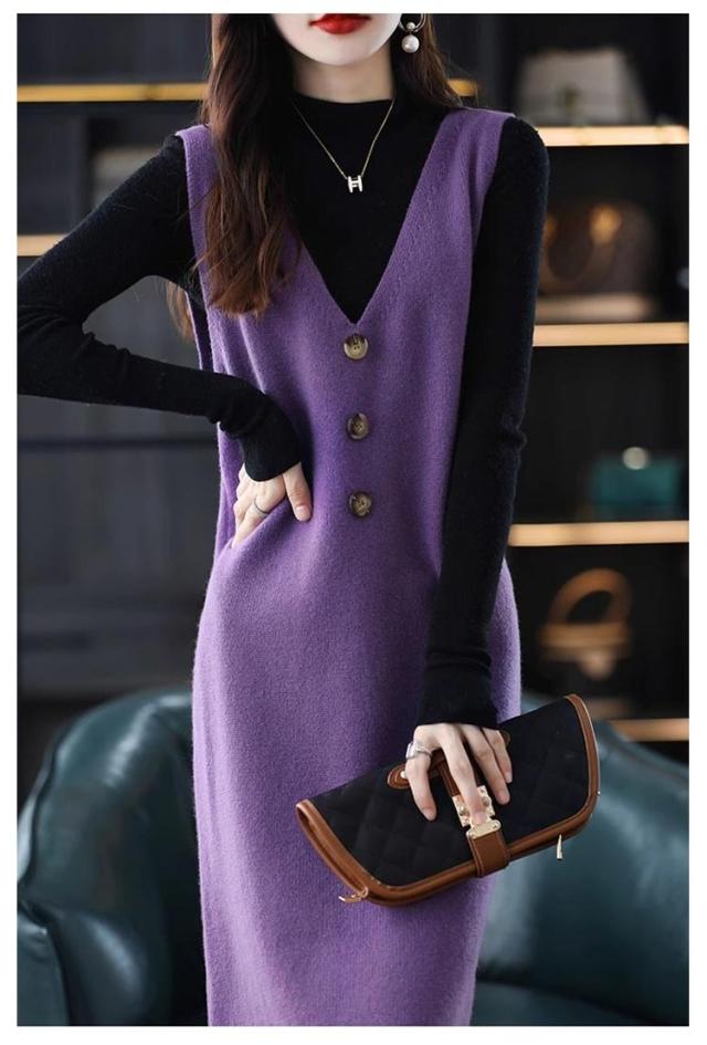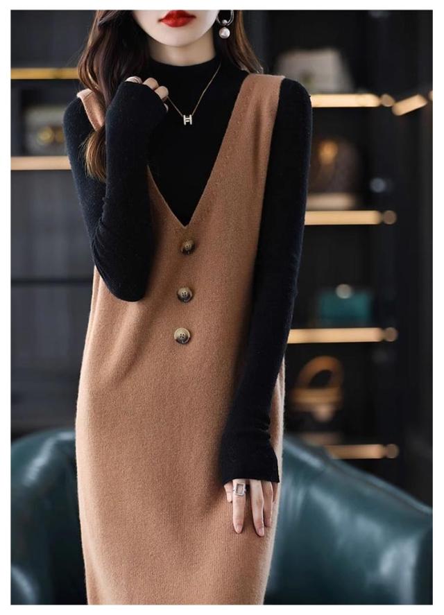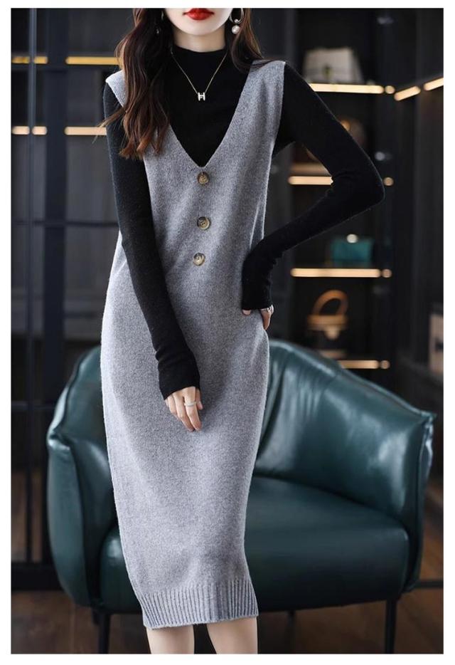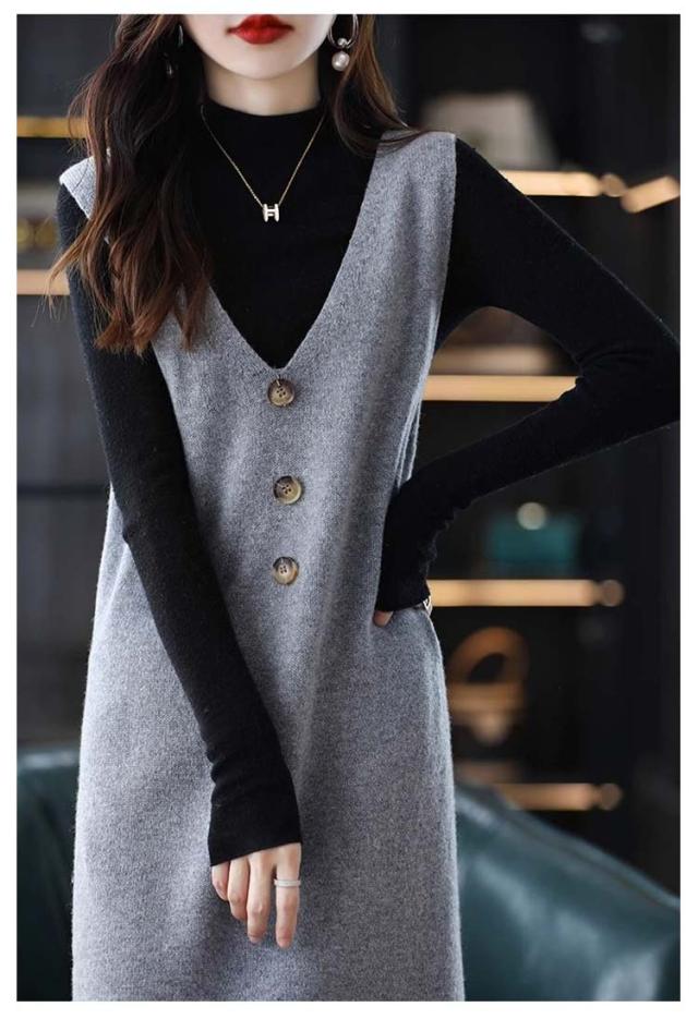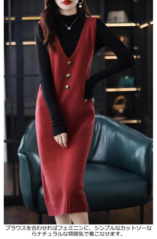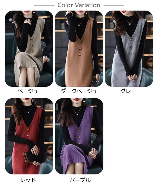 ワンピース レディース Vネック 膝丈 チュニック 重ね着 ジャンパースカート レイヤード 可愛い 秋冬 韓国 大人 ワンピース オフィス 秋 春 冬 ラウンドネック ノースリーブ 体型カバー カジュアル 着痩せ 通勤 ワンピ ミディアム きれいめ フォーマル 送料無料