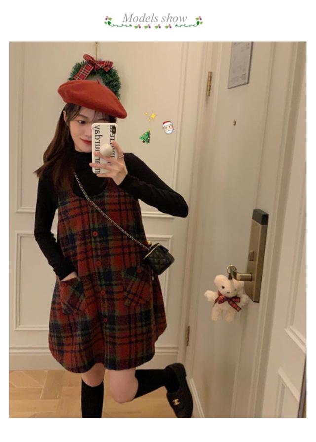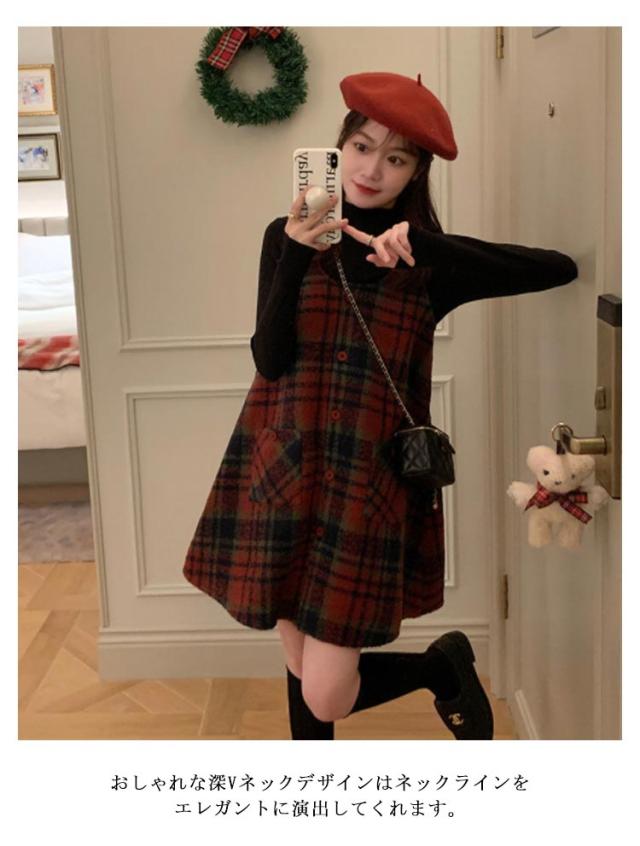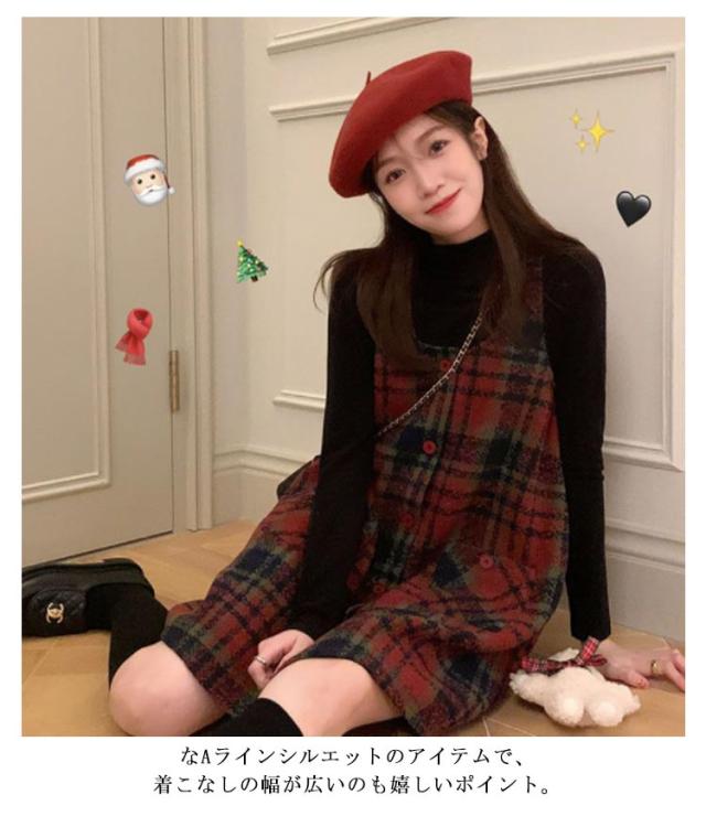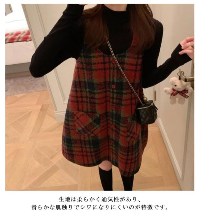 2点セット ジャンパースカート グレンチェック 大人 カットソー ワンピース ノースリーブ チュニック セットアップ 長袖 重ね着 オフィス 秋 春 ラウンドネック ワンピ きれいめ カジュアル フォーマル レイヤード 秋冬 韓国 20代30代40代 大人 着痩せ 送料無料