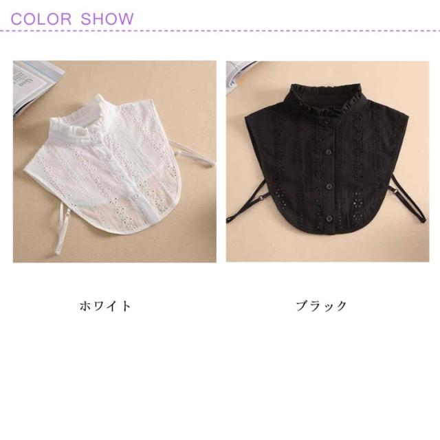 つけ襟 フリル シャツ襟 花柄レース レディース フリルネック スタンドカラー レース ゴムバンド アジャスター付き ズレにくい ふんわり シャツ 重ね着風 レイヤード エレガント フォーマル カジュアル 可愛い 立ち襟 白 黒 送料無料