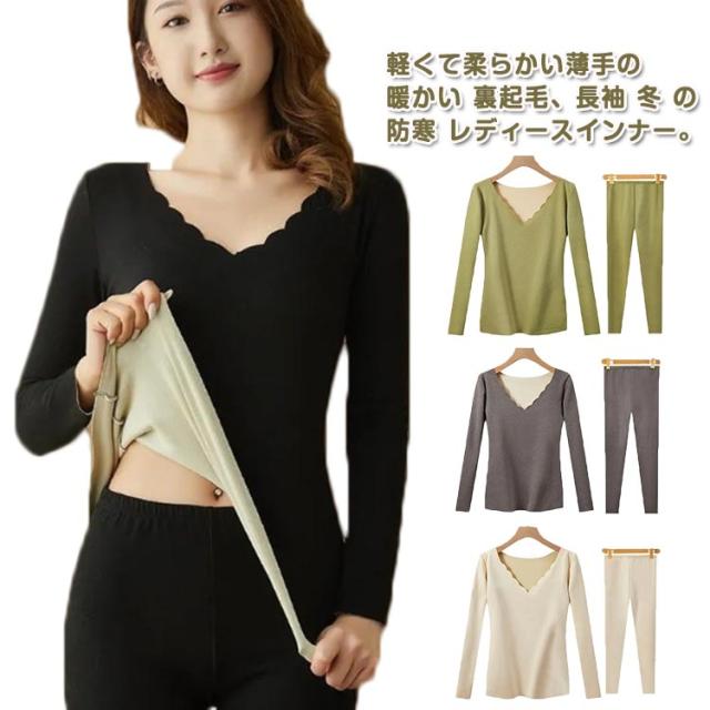 ヒートテック レディース インナーウェア 上下セット あったか インナー 長袖 裏起毛 薄手 春 秋冬 あったかインナー 長袖シャツ ロングタイツ 防寒 暖かい あたたかい ふわふわ 保温 無地 シンプル ストレッチ 冬用 女性 婦人 下着 肌着