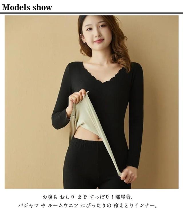 | 軽くて柔らかい薄手の 暖かい 裏起毛、長袖 冬 の 防寒 レディースインナー。 お腹も おしり まで すっぽり!部屋着、パジャマ や ルームウエア にぴったりの 冷えとりインナー。 女性用 のVネックの 冷え対策 インナーシャツです。 母の日・敬老の日・プレゼント・贈答・ギフトにおすすめ。 | |