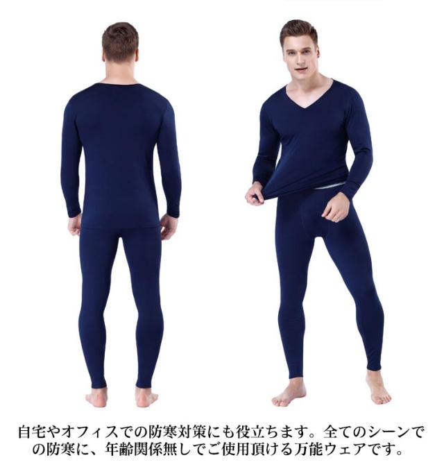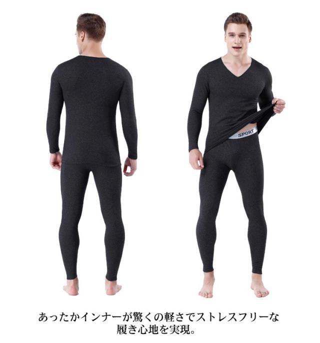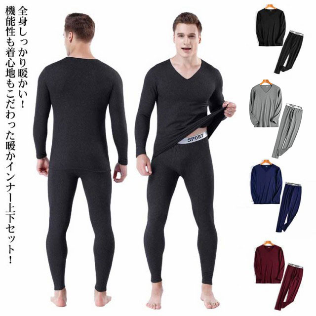 微起毛インナー メンズ インナーセット 発熱インナー 上下セット ヒートテック あったかインナー 裏起毛 インナー 無地 長袖 Vネック カットソー ロングパンツ 肌着 保温 暖かい 防寒 ストレッチ 柔らかい 肌に優しい 冬用 防寒着 大きいサイズ 送料無料