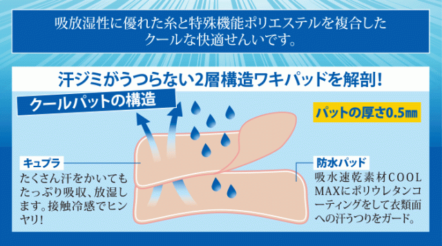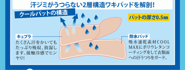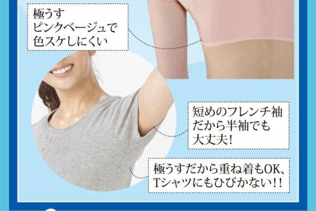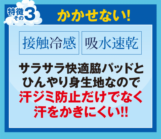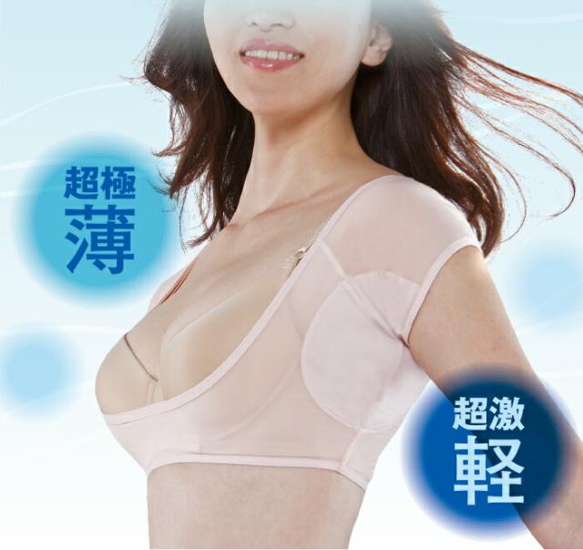 ワキ汗をしっかり吸収!吸水速乾、接触冷感生地を採用しているので、汗じみはしっかり防止するのに、蒸れずにとってもさわやか!超極薄生地で着用感0!