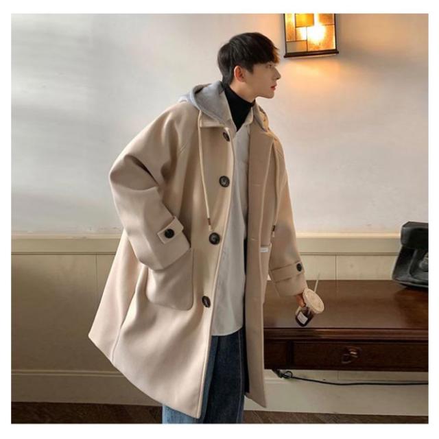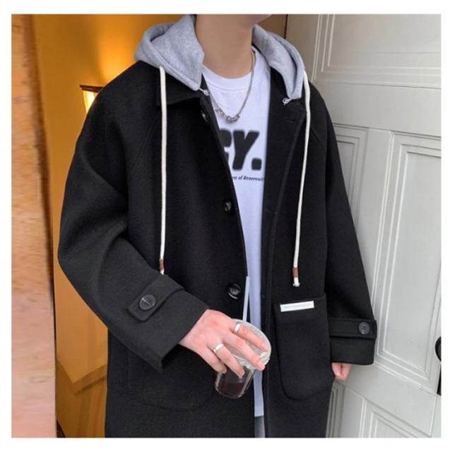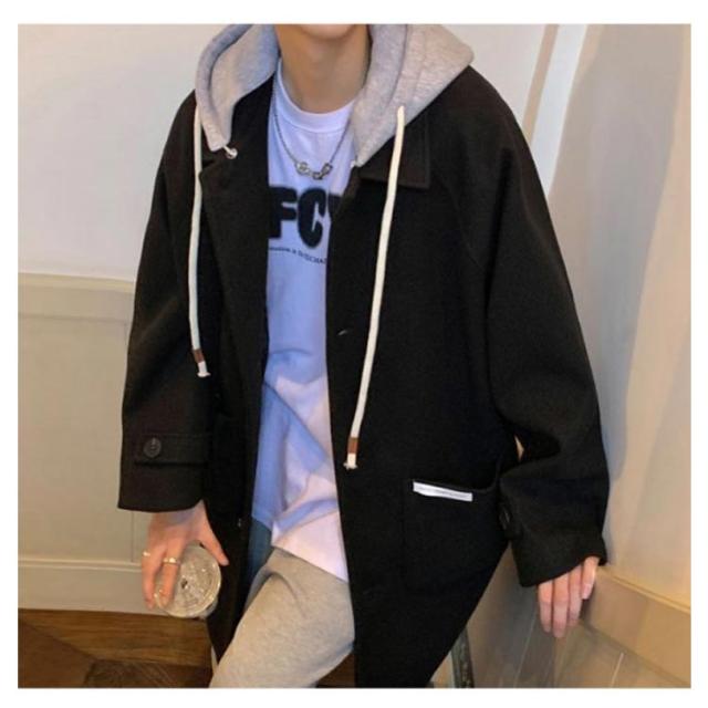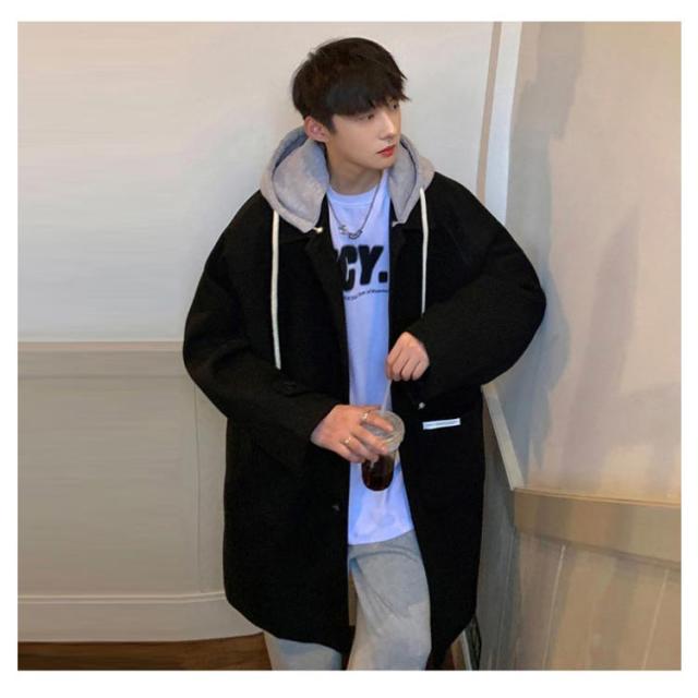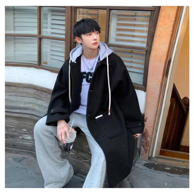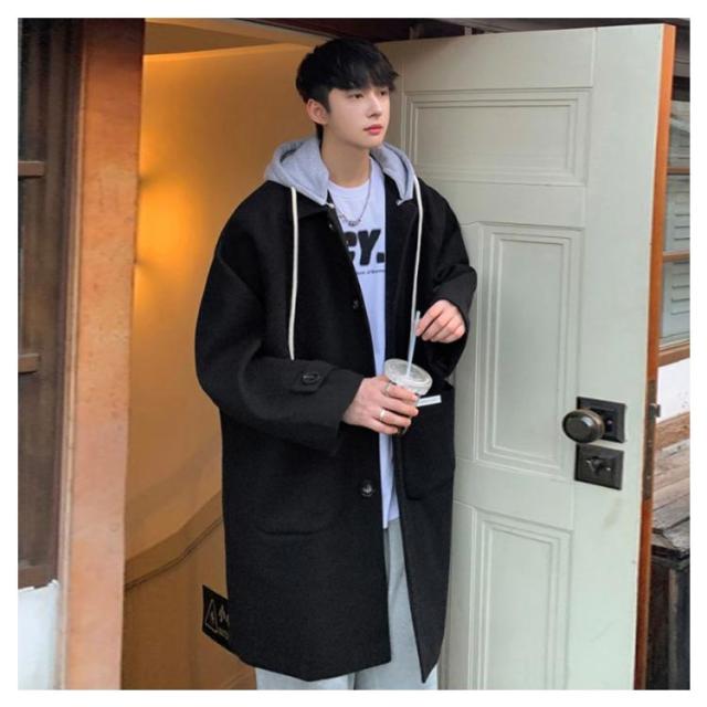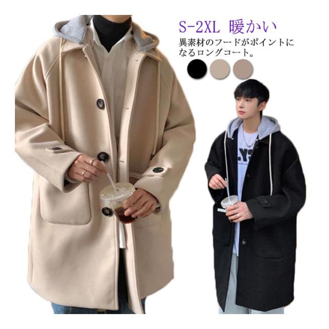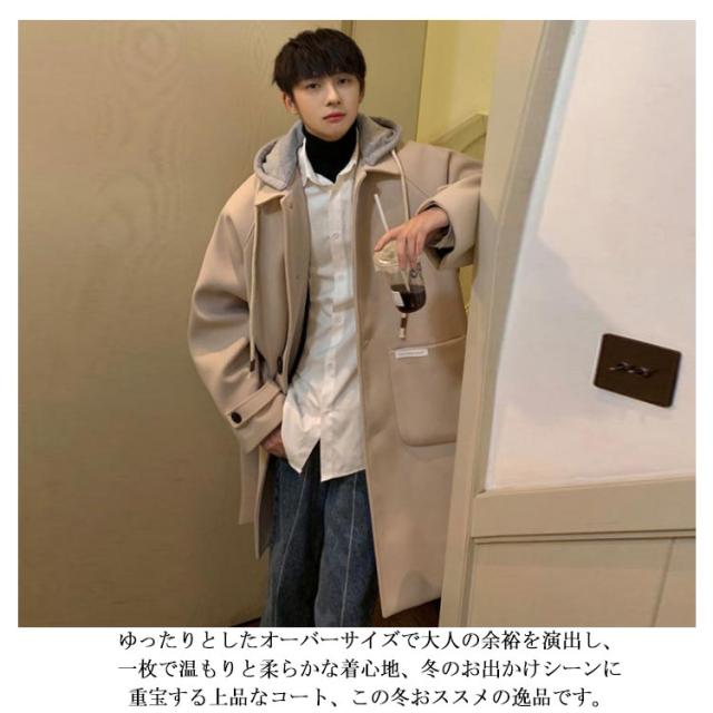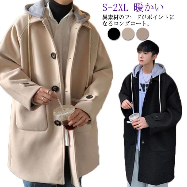 コート メンズ ロングコート オーバーサイズ アウター ロング丈 ステンカラーコート ジャケット フード付き 異素材 ドロップショルダー 暖かい 防寒 羽織り ウール調コート 大きいサイズ 通勤 カジュアル 通学 秋服 冬服 秋 冬 送料無料