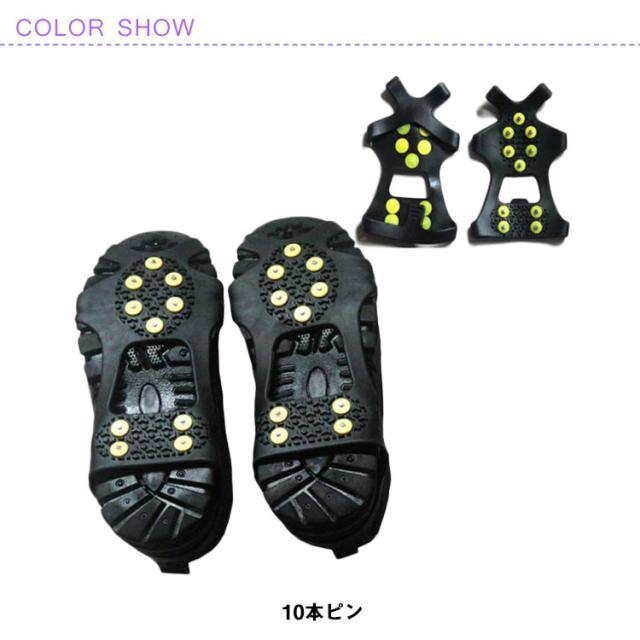 10本ピン スノースパイク アイススパイク 凍結 雪道用 靴底 靴 滑り止め 雪 靴底 雪道用 雪道 ゴム スパイク 子供 キッズ ジュニア レディース メンズ 20.5cm〜29cm 登山 シューズ 雪かき 除雪作業 雪対策 釣り