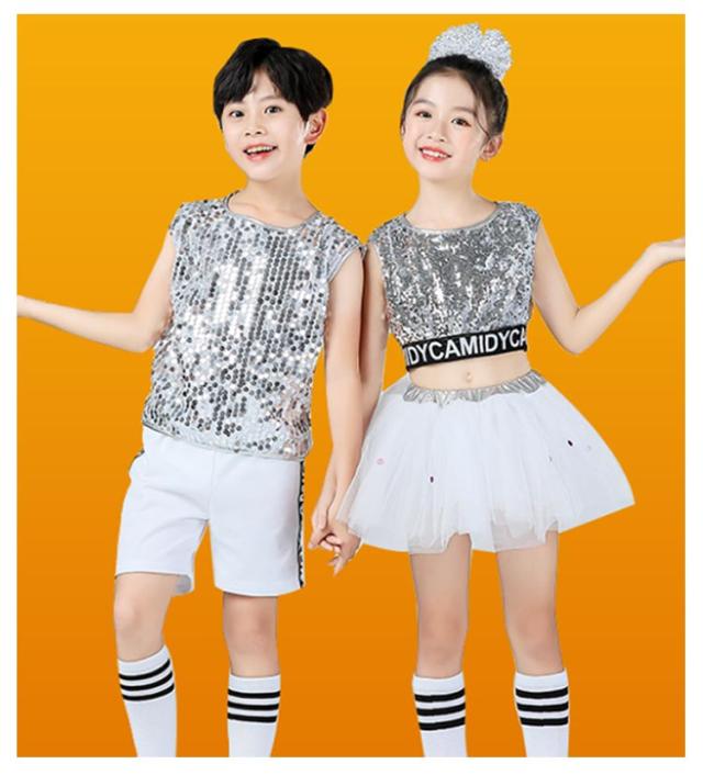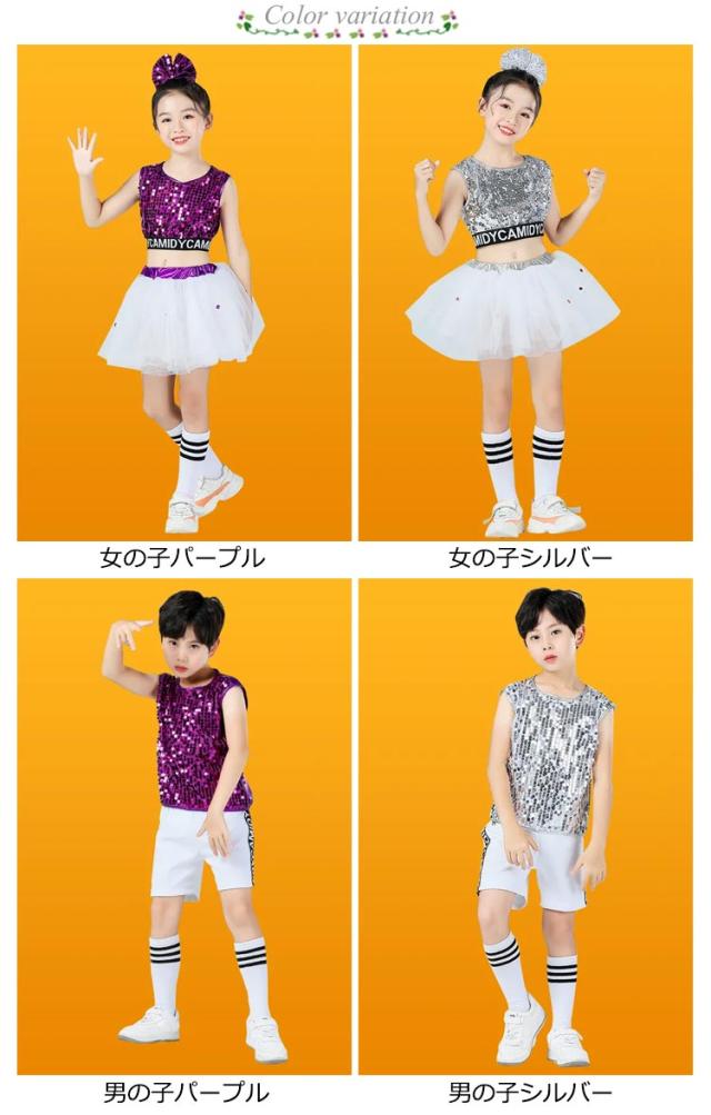 キッズ ダンス衣装 スパンコール 子供 ダンス 服 チュール ジュニア ガールズ 衣装 こども 派手 目立つ スカート ヒップホップ チアダンス 発表会 キラキラ HIPHOP 韓国 サークル 団体 文化祭 学園祭 ヘア飾り付き 送料無料