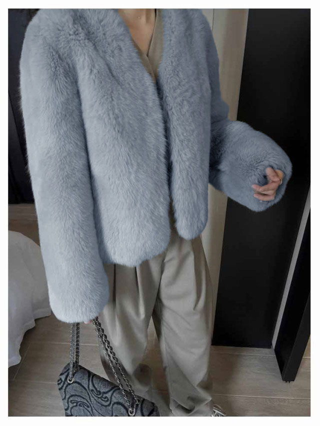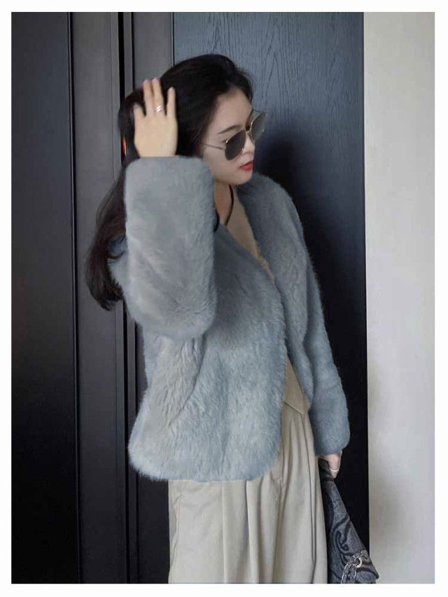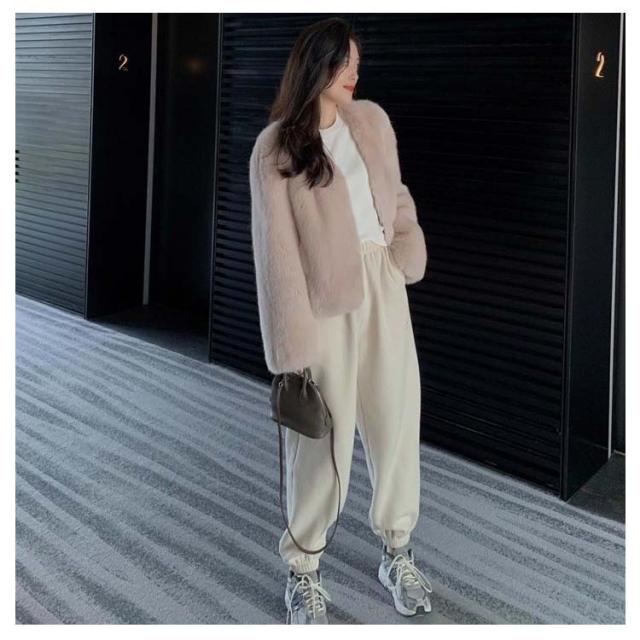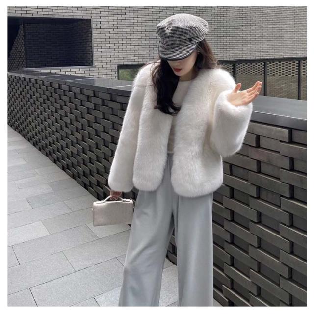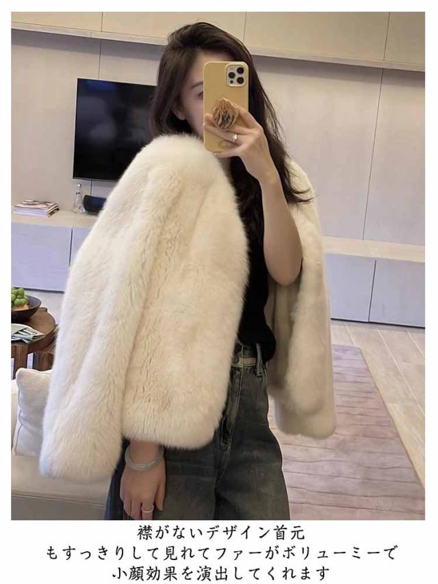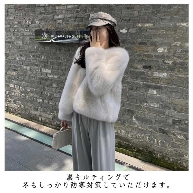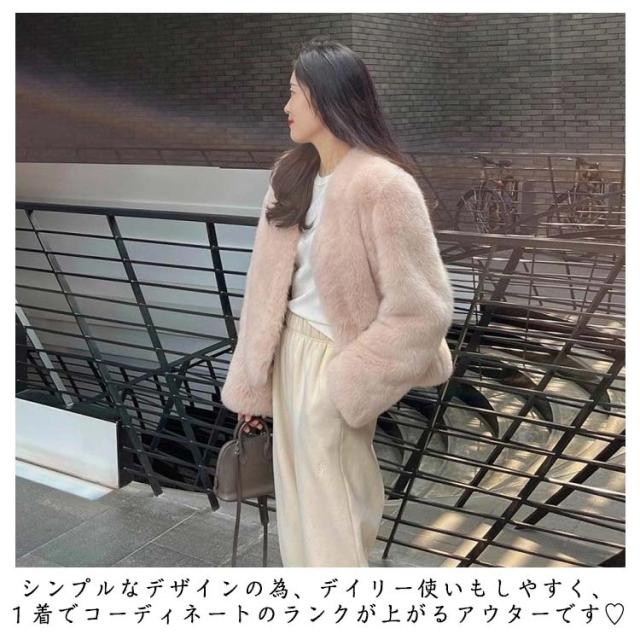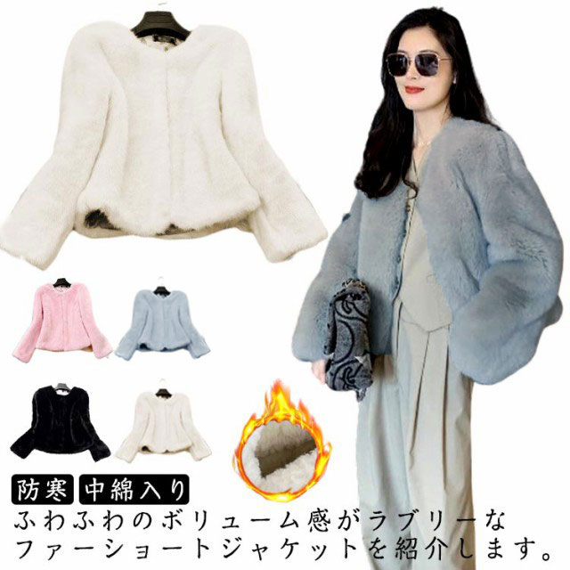 ファーコート レディース ノーカラー ファージャケット ショート丈 フェイクファー もこもこ ふわふわ 厚手 中綿入り 裏キルティング 秋 冬 アウター 羽織り ファー コート ジャケット あたっか 防寒 保温 韓国風 大人 きれいめ 可愛い 【送無】