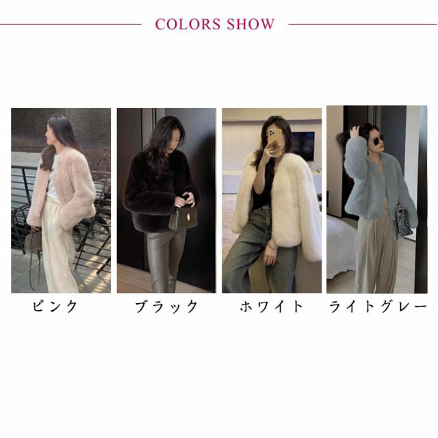 | ふわふわのボリューム感がラブリーなファーショートジャケットを紹介します。 襟がないデザイン首元もすっきりして見れてファーがボリューミーで小顔効果を演出してくれます 裏キルティングで冬もしっかり防寒対策していただけます。 バランスの取りやすいショート丈でボトムスを選ばず、オンオフで着たくなる1着です。 シンプルなデザインの為、デイリー使いもしやすく、1着でコーディネートのランクが上がるアウターです? | |