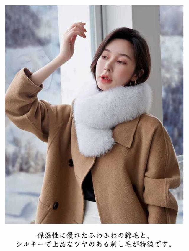 フォックス ファーマフラー ティペット 女性用 レデイース フォックスファー マフラー クリップ付 無地 カラー 毛皮 リアルファー スヌード ネックウォーマー 韓国風 ボリューム 防寒 大人 きれいめ 可愛い 秋 冬 結婚式 誕生日 プレゼント ギフト 【送無】