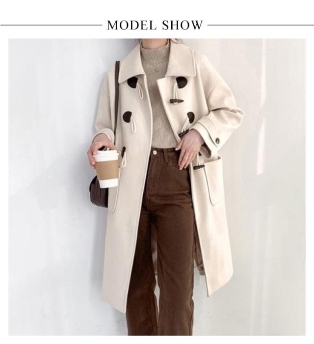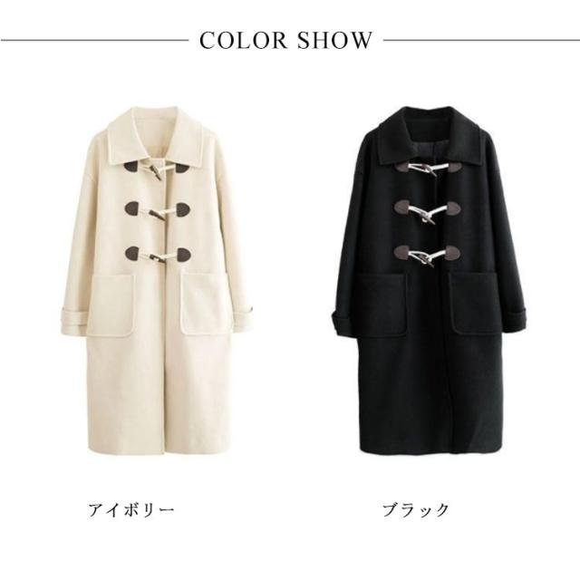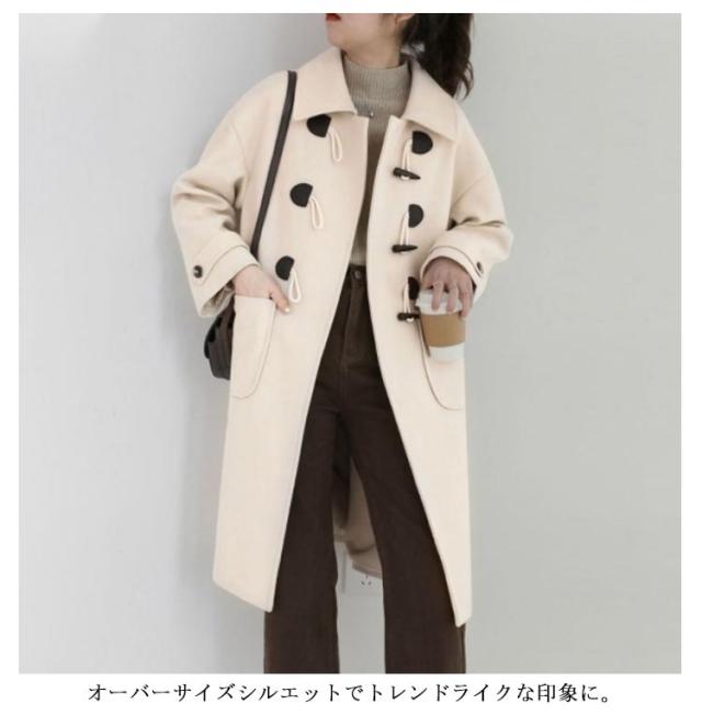 【送料無料】ダッフルコート ステンカラー レディース コート ロングコート 膝下丈 厚手 裏地付き 中綿入り ゆったり オーバーサイズ 秋冬 アウター 防寒 防風 通勤 通学 着回し カジュアル アイボリー ブラック