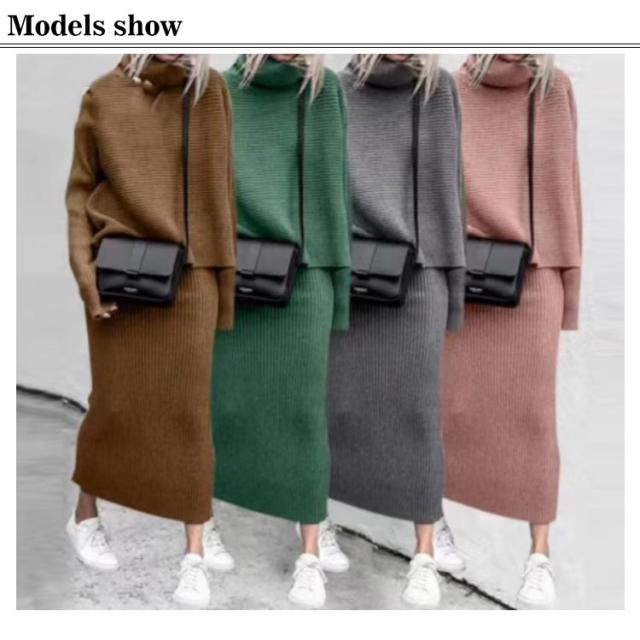 【送料無料】ニット セットアップ レディース ニットスカート タイトスカート ニットセーター 長袖 タートルネック リブニット プルオーバー 2点セット 春 秋 服 通勤 無地 シンプル カジュアル 大きいサイズ S M L XL 2XL