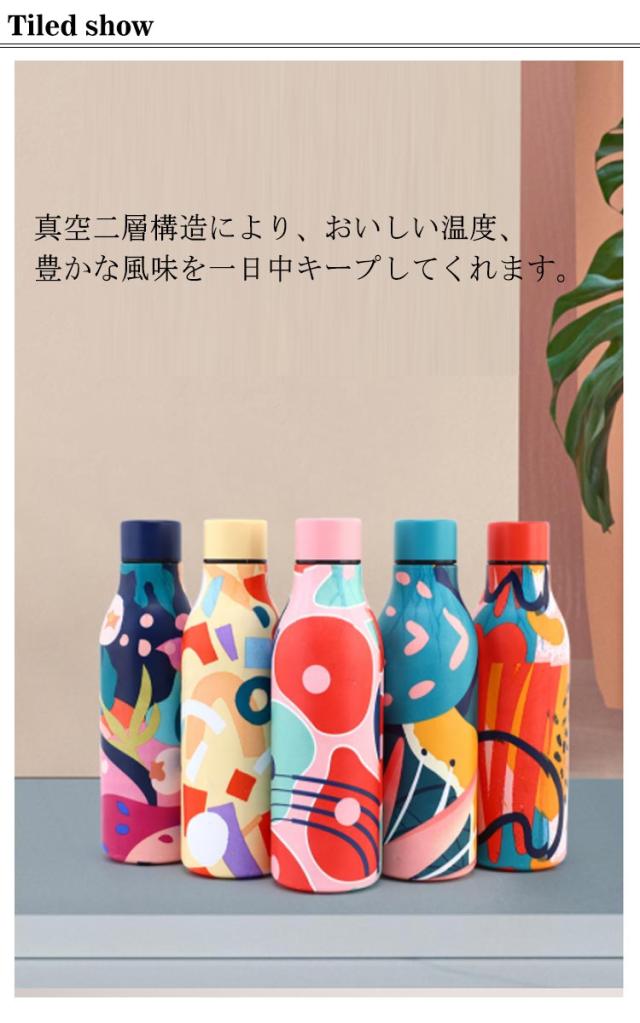 | おしゃれなマルチ柄の二重真空構造保温保冷スリムボトル。550ml【保温時間8-12H】 スリムなデザインでかばんにもすっきり収まる水筒は、容量も十分◎。 真空二層構造により、おいしい温度、豊かな風味を一日中キープしてくれます。 スリムなので、鞄などに入れて持ち運ぶ時も邪魔になりにくいです◎ 毎日の通勤から近所のお散歩、ちょっとした旅行まで、いつでもそばに置いておきたいアイテムです。 パーツが少なく、お手入れも簡単。 | |