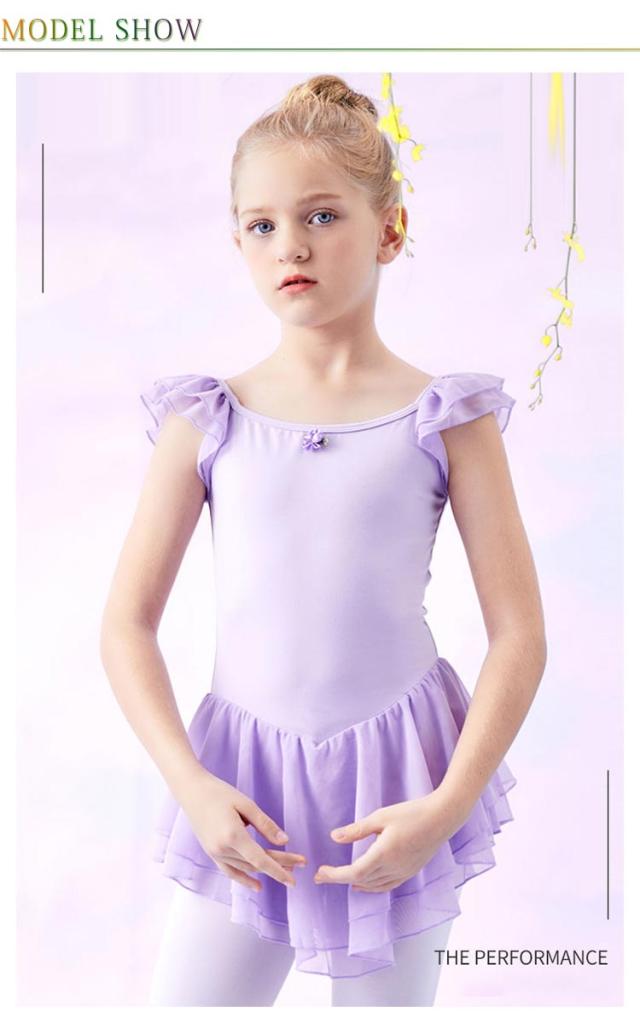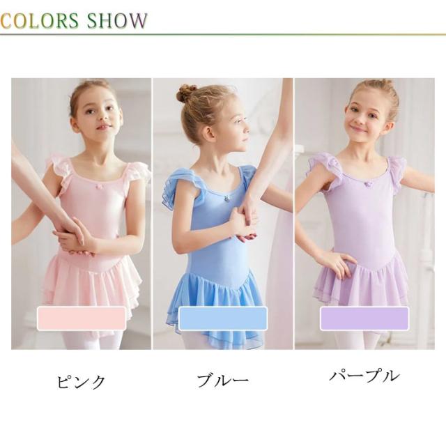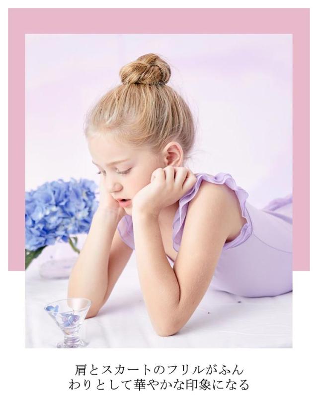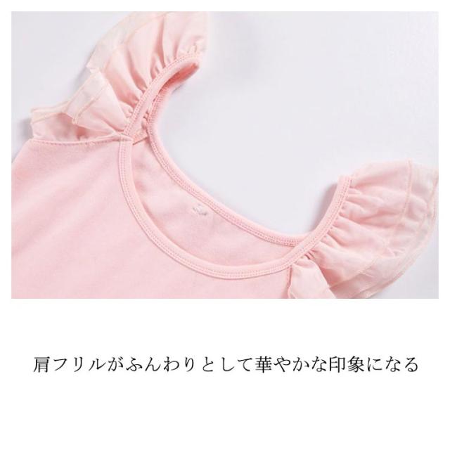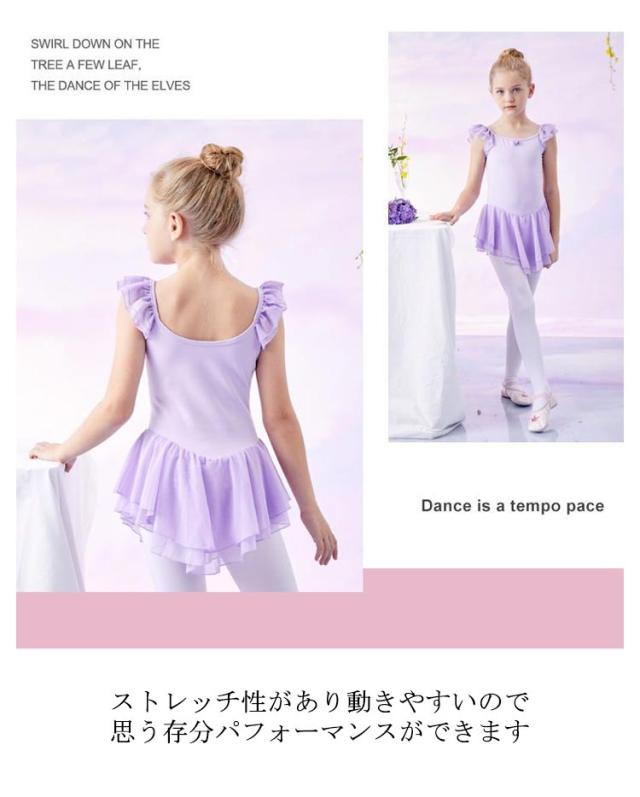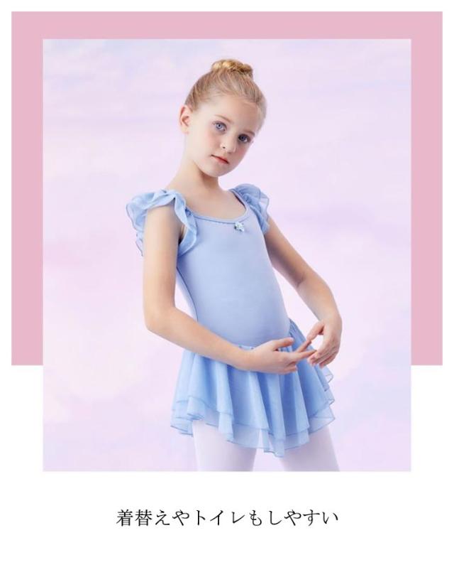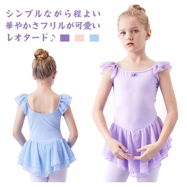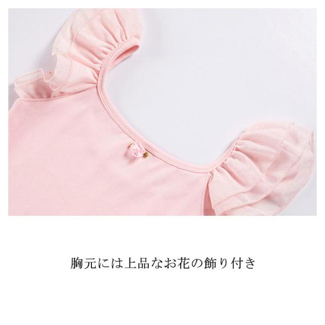スカート付 バレエ レオタード キッズ ジュニア 子供 女の子 送料無料 ノースリーブ フリル お花 ワンポイント ストレッチ バレエ用品 クロッチ スナップボタン 着替えやすい 通気性 ダンスウェア 体操