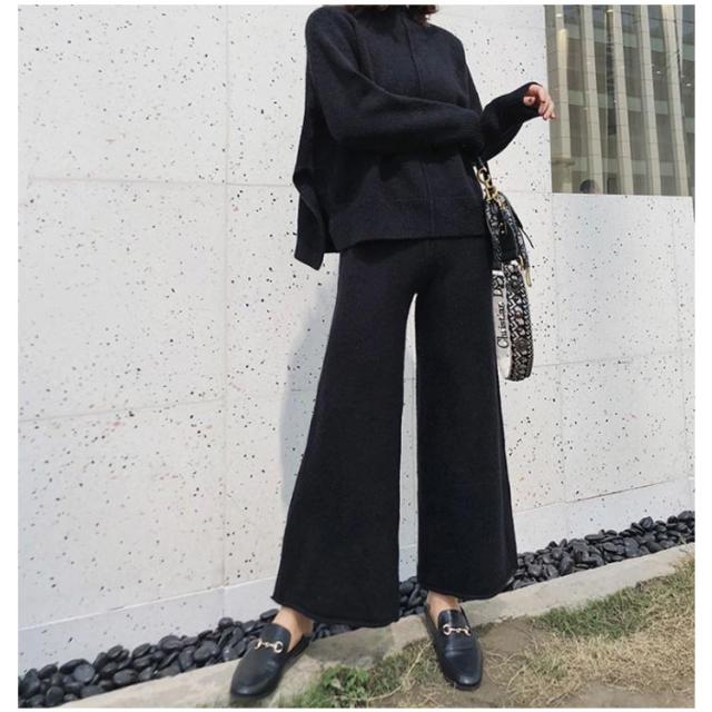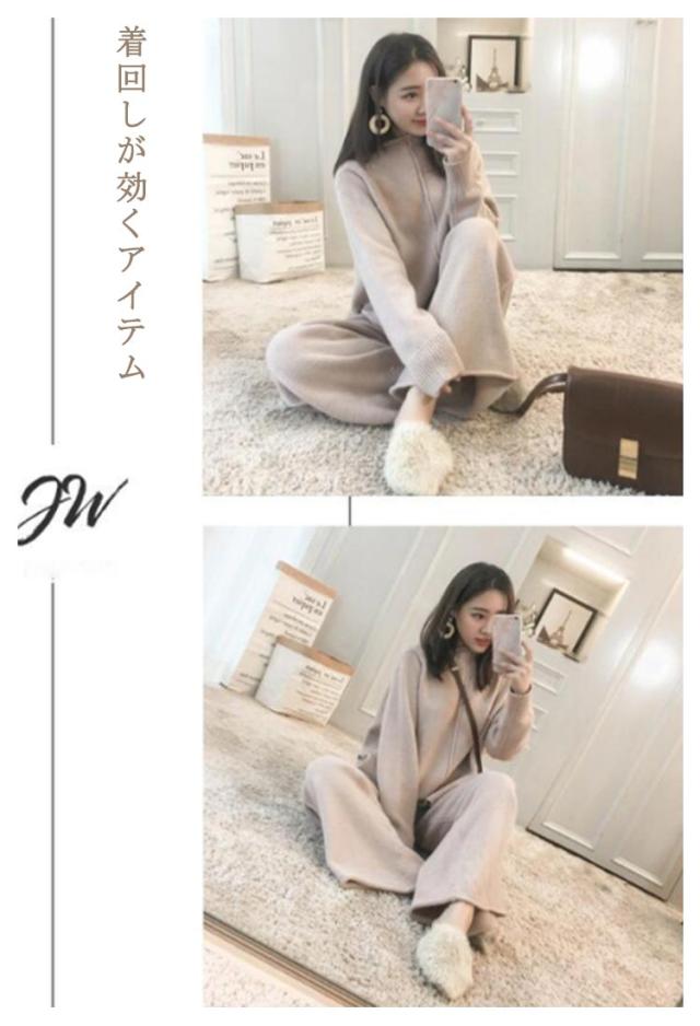 送料無料 セットアップ レディース 秋冬 セットアップ ニット ニットセーター プルオーバー ワイドパンツ ニット ニットセットアップ ニット 通勤 カジュアル 長袖 ゆったり 体型カバー サイドスリット 厚手 タートルネック 無地