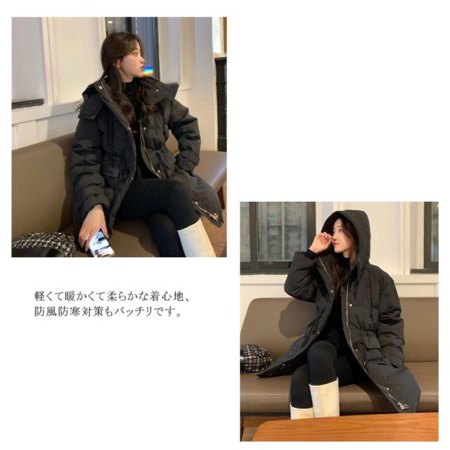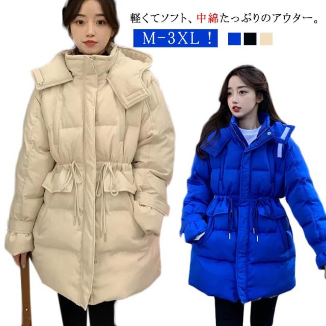 レディース ダウン風コート 中綿 オーバーコート 中綿コート 冬アウター ミディアム丈 ロング丈 中綿 ジャケット フード付き 防寒 アウター 厚手 軽い 暖かい 冬服 ゆったり 大きいサイズ 韓国ファッション ビッグシルエット 通勤 通学 可愛い