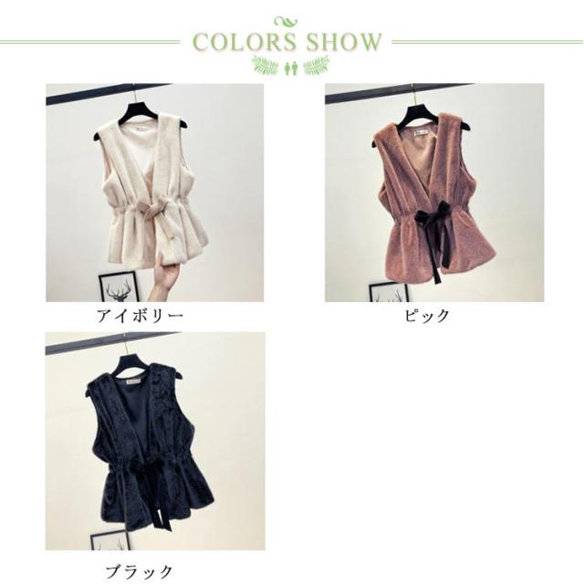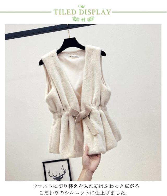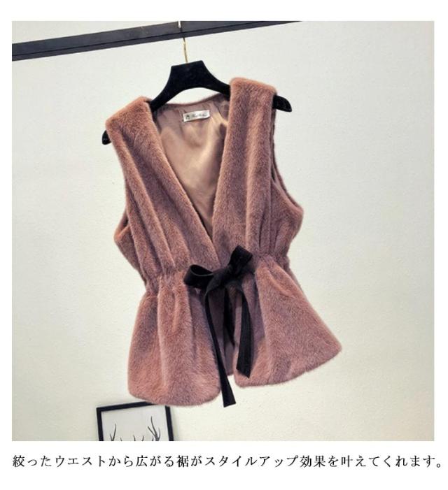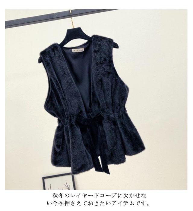 ファーベスト ドローコード フェイクファー ベストレディース アウター ベスト ファーベスト ウエストマーク エコファー ジレ コート ジャケット アウター 羽織り ノースリーブ 前開き 無地 大人 上品 カジュアル 秋 冬