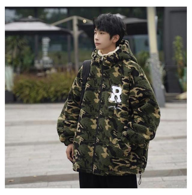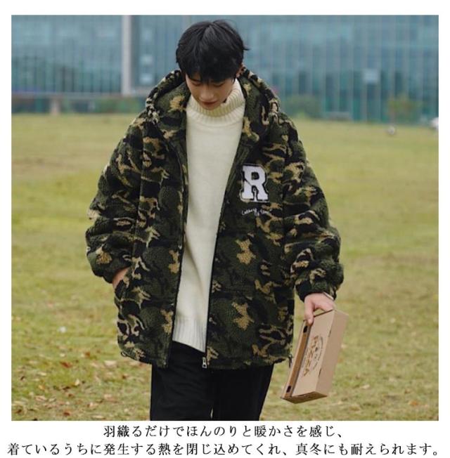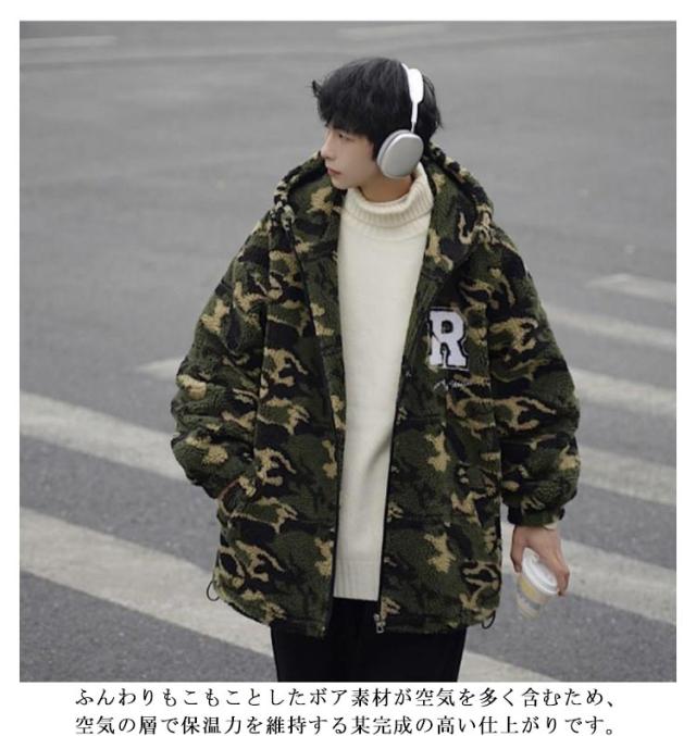 ボア ジャケット メンズ ボア ブルゾン 迷彩 メンズ ボア パーカー 中綿ジャケット 厚手 防寒 フード付き メンズ フード ブルゾン メンズ アウター ボアジャケット ボアパーカー 大きいサイズ オーバーサイズ ジップパー
