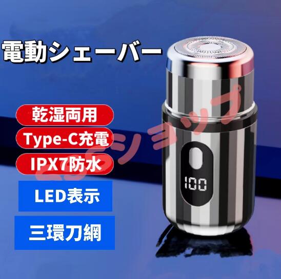 【20%超還元セレクト】小型電動シェーバー 6枚刃 回転式 深剃り 電気シェーバー 携帯髭剃り 水洗い可 IPX7防水 乾湿両用 Type-C充電式
