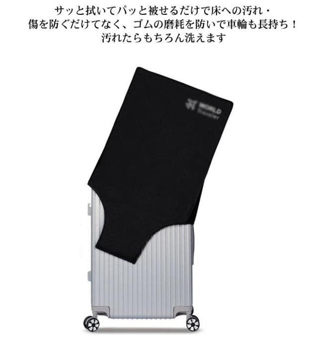 | 大切なケースを傷や汚れ、ほこりなどから守るキャリーバック用カバーです お気に入りのスーツケースを傷や汚れから保護! すっぽり被せるだけの簡単設計! シンプルなデザインで年齢・性別関係なくお使いいただけます。 サッと拭いてパッと被せるだけで床への汚れ・傷を防ぐだけてなく、ゴムの磨耗を防いで車輪も長持ち!汚れたらもちろん洗えます | |