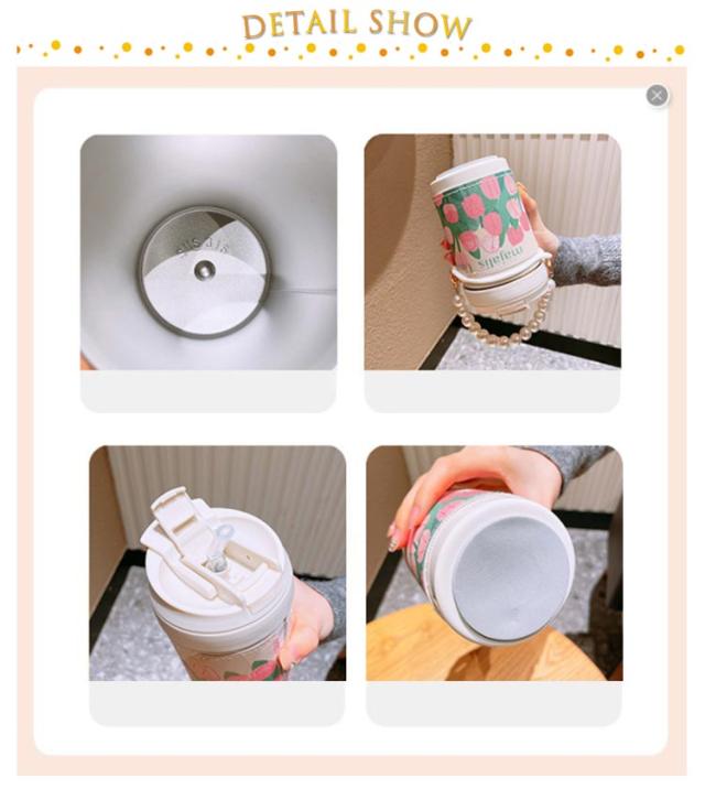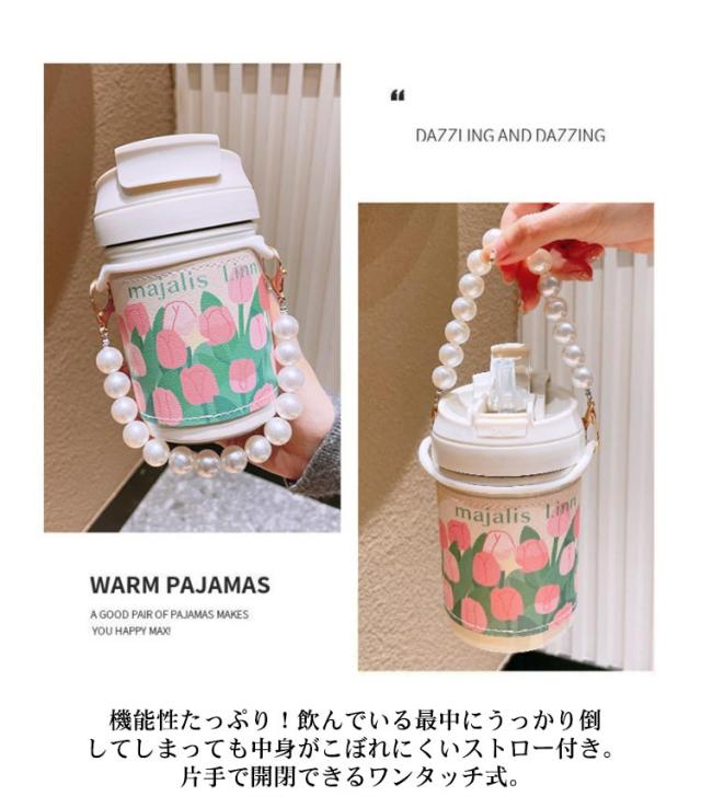 | 寒い時も暑い時も、美味しい飲み物をお届け。 コンパクトなサイズ感でカバンのすっぽり入れるからいつでも飲めます。 真空二重構造のステンレス製なので、保温性・保冷性に優れ、より長く温度を保つことが可能。 機能性たっぷり!飲んでいる最中にうっかり倒してしまっても中身がこぼれにくいストロー付き。片手で開閉できるワンタッチ式。 直飲みでもストローでき使える2TYPEの飲み方、シーンやお好みに合わせてお使いいただけます。 落としたりぶつけたりしたときにも衝撃から本体を守る可愛いカバーが付いています。 持ち運びに便利なパールハンドストラップや斜め掛けできるショルダーストラップも付属。 広口タイプでドリップコーヒーやアイスなどが入れやすい。 | |
