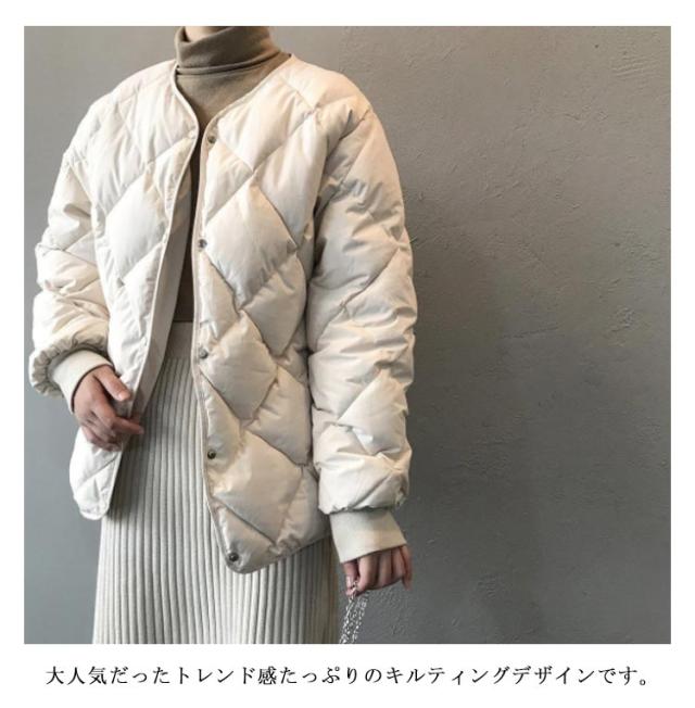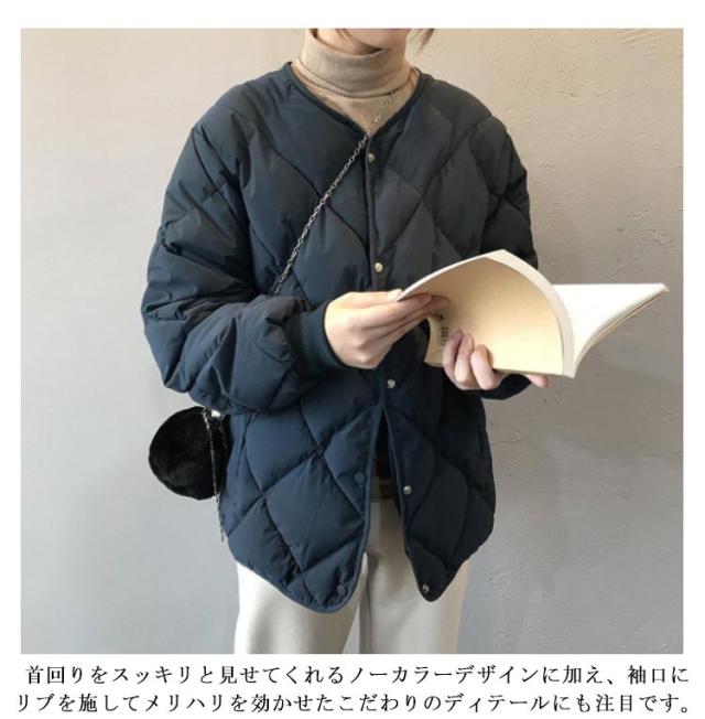 ダウンジャケット キルティングジャケット レディース ノーカラージャケット コクーン アウター ダウンコート 冬服 軽量 ショート丈 ブルゾン 防寒 おしゃれ かわいい 楽ちん 体型カバー 上着 羽織り 秋冬