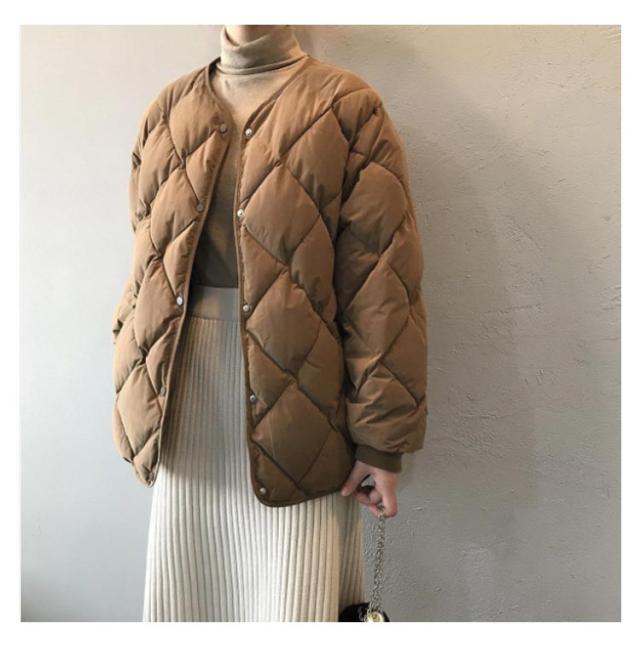 | コクーンシルエットが女性らしいキルティングダウンジャケット。 大人気だったトレンド感たっぷりのキルティングデザインです。 首回りをスッキリと見せてくれるノーカラーデザインに加え、袖口にリブを施してメリハリを効かせたこだわりのディテールにも注目です。 すっきりした襟元のデザインでコーディネートに馴染みやすく、低身長〜高身長の方までバランス良くお召いただけます。 身幅にゆとりがあり真冬の寒い時期にもしっかり着込める、1枚あれば活躍必須の万能アウターです。 | |