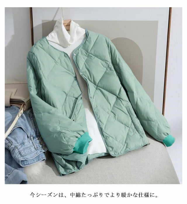 ジャケット ジャケット レディース アウター 中綿ジャケット キルティングコート ノーカラーコート ダウン風コート 長袖 中綿コート ショート 上着 軽量 インナーダウン 秋 冬 インナージャケット きれいめ カジュアル
