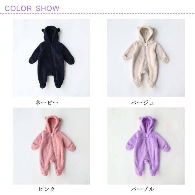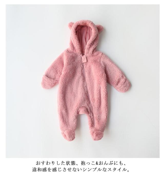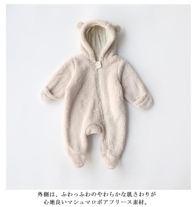 ボアジャンプスーツ 裏起毛 ロンパース きぐるみ コットン くまさん 赤ちゃん くま カバーオール ジャンプスーツ ベビー服 新生児 男の子 女の子 女子 男子 プレゼント 冬 秋 防寒 着ぐるみ 年賀状 60 70 80 90