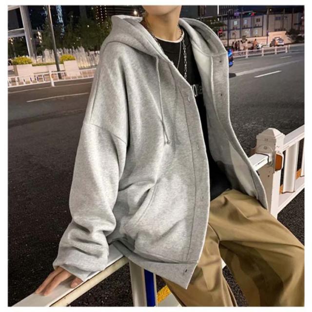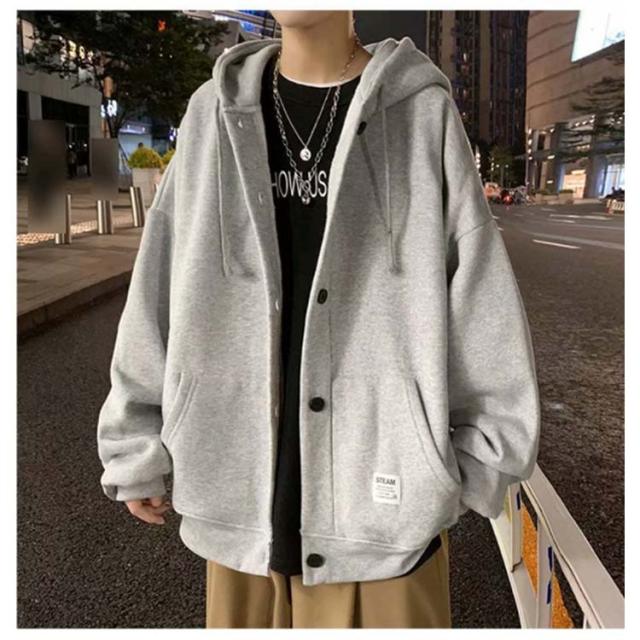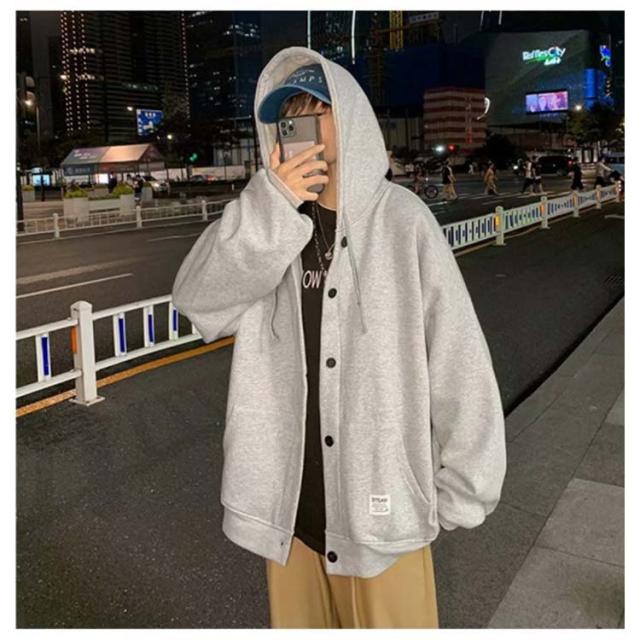 パーカー スタジャン ビッグシルエット ブルゾン メンズ ゆったり ジャンパー 前開き 大きいサイズ フード付き トップス ボタン カーディガン 春 秋 冬 カジュアル アウター ジャケット スウェット 無地 通学 送料無料