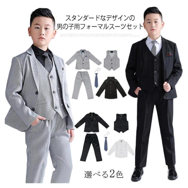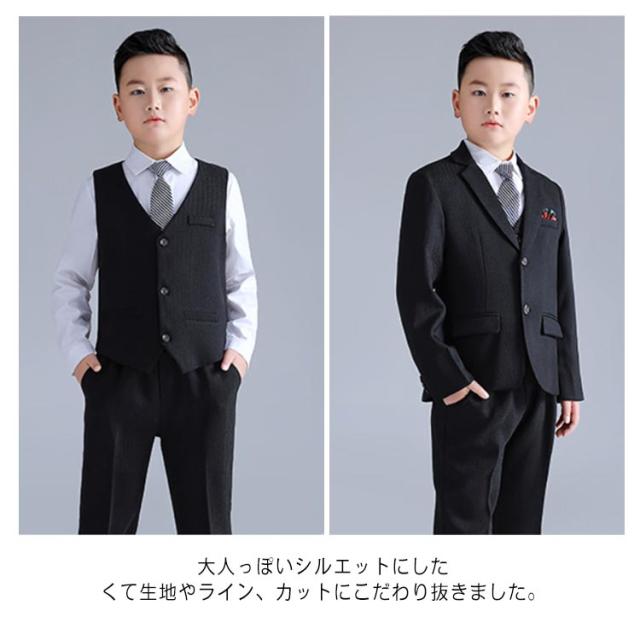 男の子 フォーマルスーツ 七五三服装 七五三スーツ ゆったり 大きいサイズ フォーマル スーツ 5点セット パンツスーツ こどもスーツ おしゃれ 韓国 ジャケット ベスト パンツ シャツ ネクタイ 入学式 卒業式 入園式 卒園式 発表会 成人式 ギフト 送料無料