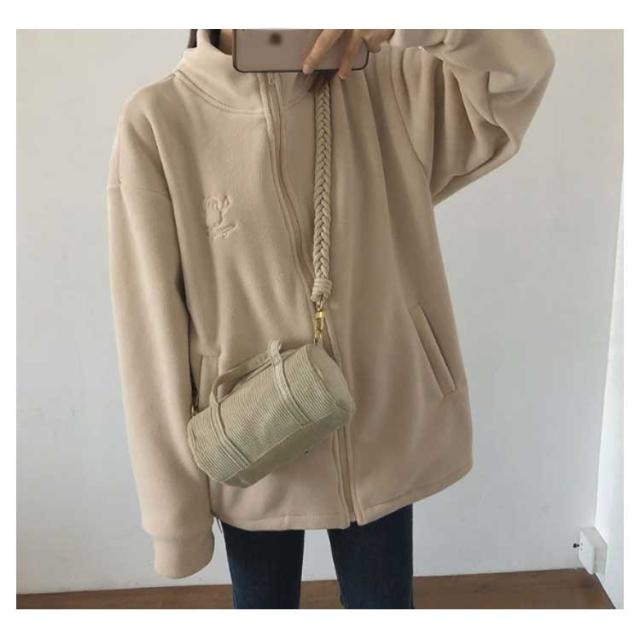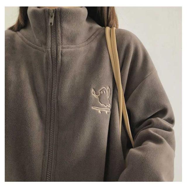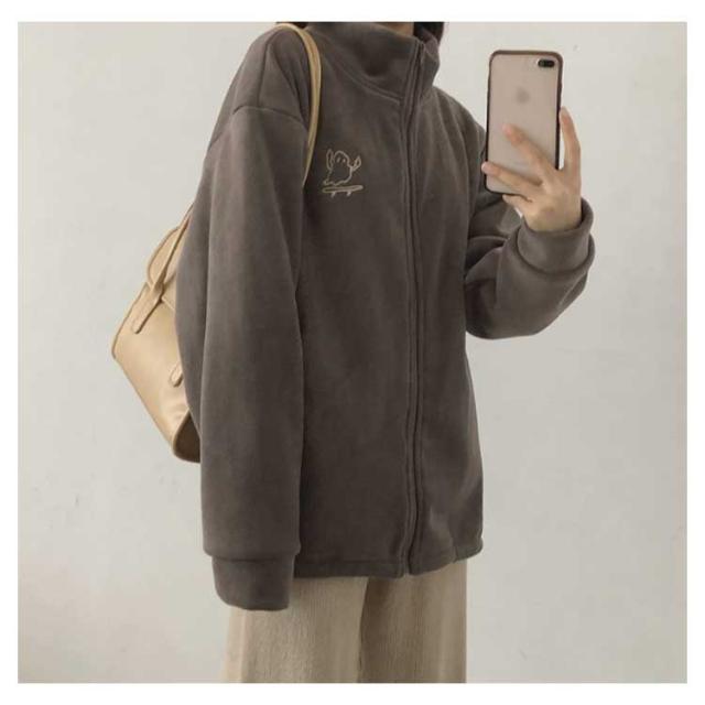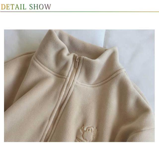 | 寒い季節に最適なフリースジャケットです。 厚手の素材が体をしっかり包み込み、暖かさを保ちます。 前開きファスナーで開閉も楽々。 ゆったりめでストレスフリーな着心地。 便利なサイドポケット、デザインのポイントでもあるお洒落で可愛い胸刺繍。 アウトドア活動や日常の防寒に最適です。 シンプルなデザインでありながら、スタイリッシュな雰囲気を演出します。 | |
