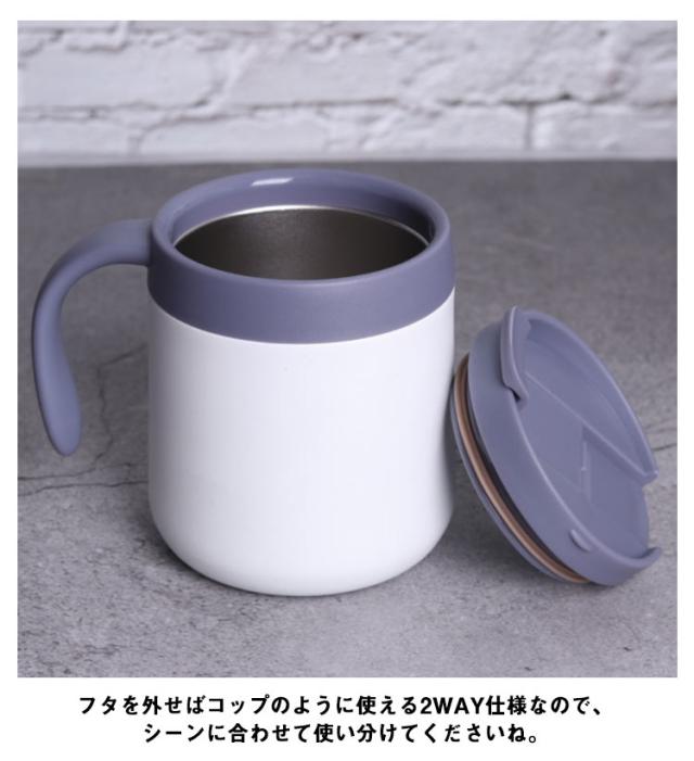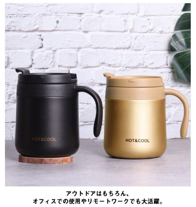 | 冷たい飲み物も温かい飲み物も、しっかり適温キープするステンレスマグ。 食器などに使われている耐久性・耐錆性に優れたステンレスを採用しているためお手入れも簡単 蓋つきで、中身がこぼれにくく持ち運びも楽々です。 飲み口にフラップ式のフタがついているので、ほこりも入りづらく、オフィスでも自宅でも快適でおすすめです。 フタを外せばコップのように使える2WAY仕様なので、シーンに合わせて使い分けてくださいね。 アウトドアはもちろん、オフィスでの使用やリモートワークでも大活躍。 | |