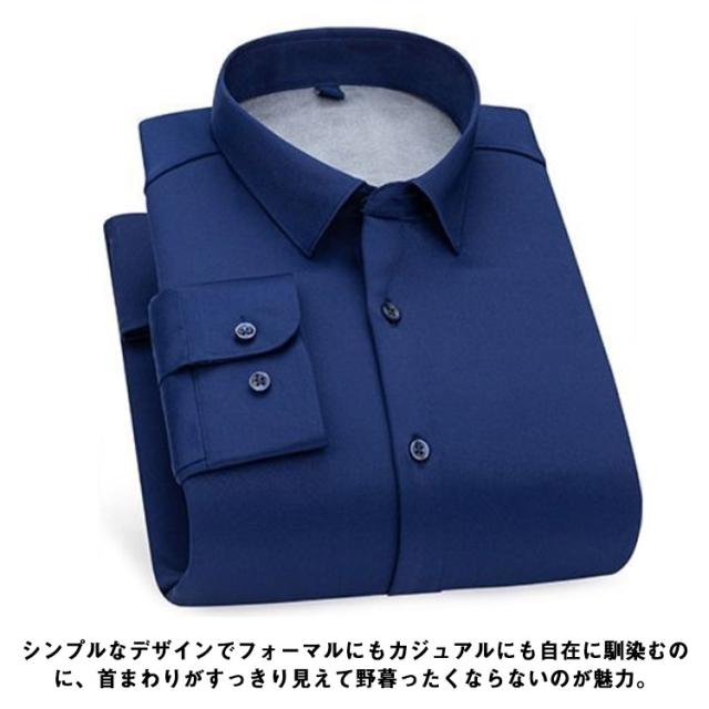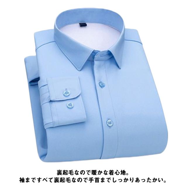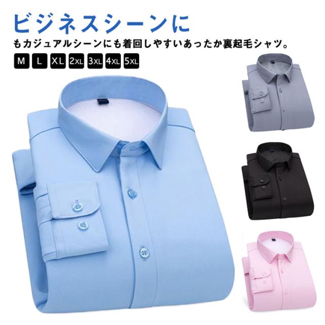 M-5XL! シャツ メンズ 裏起毛 長袖 冬 秋 厚手 ビジネスシャツ カジュアルシャツ フォーマル 通勤 オフィス ワークシャツ 長袖シャツ シンプル 無地 ブラック ホワイト 黒 白 ネイビー 紺 ブルー L XL 2XL 3XL 4XL
