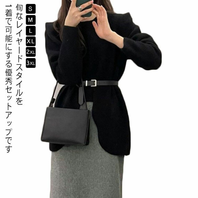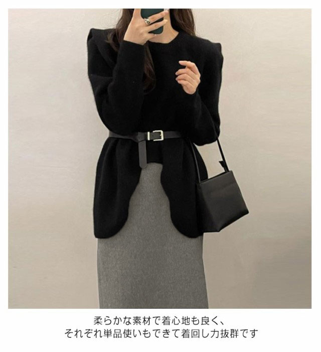| 旬なレイヤードスタイルを1着で可能にする優秀セットアップです しっかりとした厚手の生地なので、ストンとした落ち感を作り綺麗なシルエットを演出します。 柔らかな素材で着心地も良く、それぞれ単品使いもできて着回し力抜群です | |