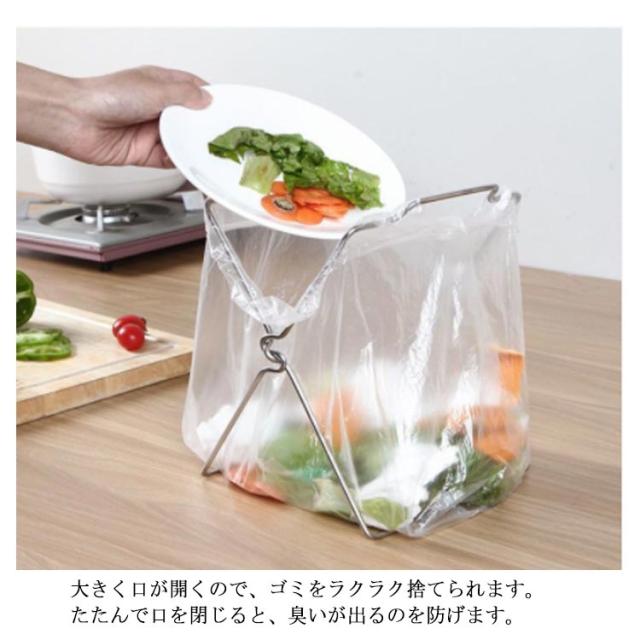 ゴミ箱 ごみ箱 レジ袋ハンガー キッチン 分別ゴミ箱 レジ袋掛け 折りたたみ スリム 省スペース 折り畳み ゴミ袋 レジ袋スタンド ゴミ袋ホルダー キッチン扉 引っ掛け 流し台 おしゃれ シンプル 軽量 錆びにくい 多用途 収納便利 組立不要