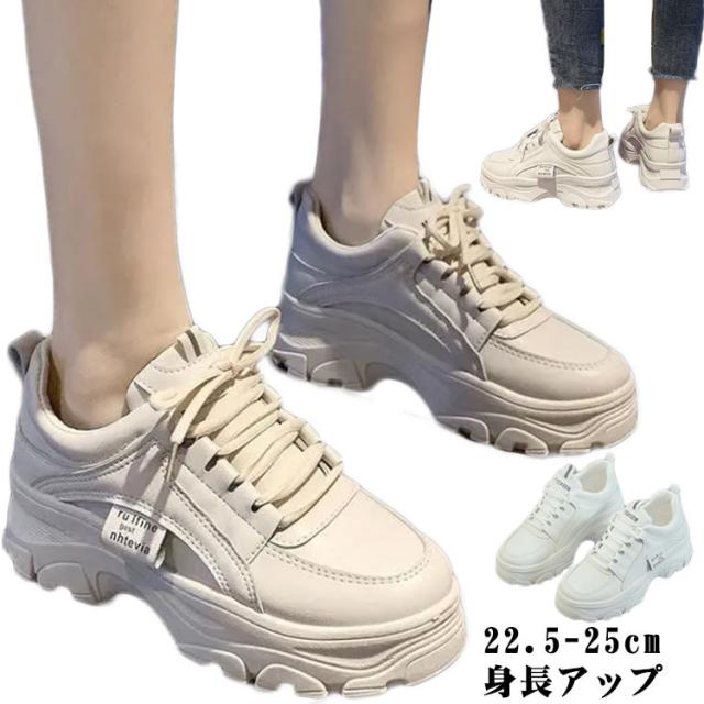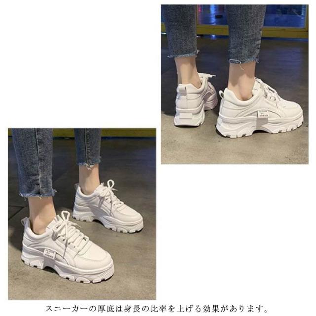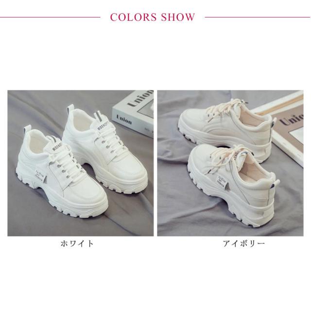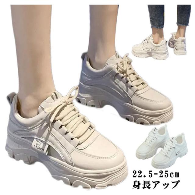 厚底 スニーカー ローカット ウォーキング ダッドスニーカー レディース ジュニア インヒール レースアップ カジュアル 美脚 足長 脚長 身長アップ スポーツ シンプル 春 夏 秋 冬 白
