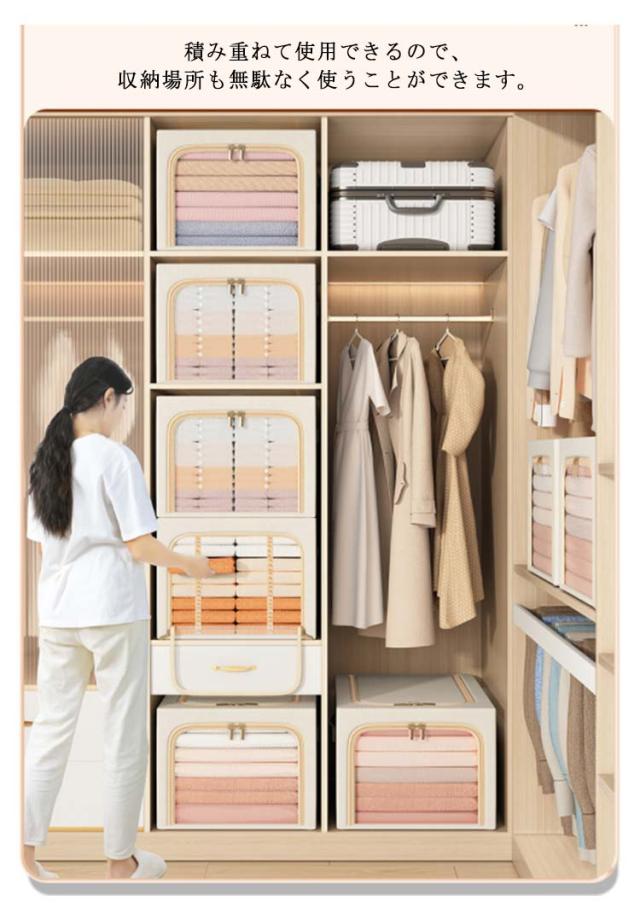 | 【商品名】衣類収納ケース 【サイズ】 31L(30*45*23cm) 49L(35*47*30cm) 56L(35*53*30cm) 【素材】綿麻、メタルワイヤー 【特徴】 水洗いOK! 高品質な綿麻素材を採用。 透明窓付き衣類収納ケースのご紹介です。 メタルワイヤーで自立するのでとっても便利です。 積み重ねて使用できるので、収納場所も無駄なく使うことができます。 上から、前から2方向取り出しも楽ちん♪ ダブルファスナー式ですので中身の出し入れが簡単です。 持ち手がついているので、持ち運びに便利。 使わないときはコンパクトに折りたためるので、わずかな隙間に収納可能。 北欧風はもちろん、和モダン、カフェ風、洋室、和室にも似合うオシャレな収納ボックス。 | |