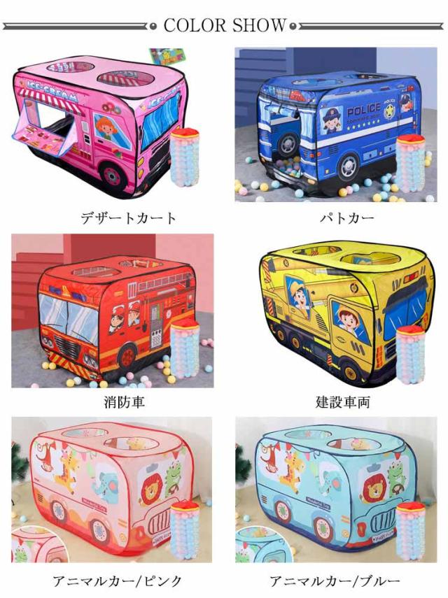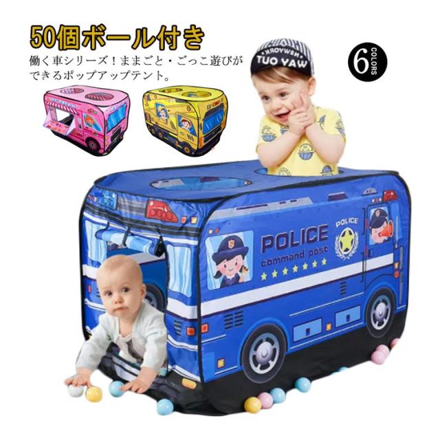 ボールハウス 50個ボール付き ポップアップテント ポップアップ式 ボールプール 子供用テント プレイハウス 室内遊具 車 消防車 パトカー ごっこ遊び 全6柄