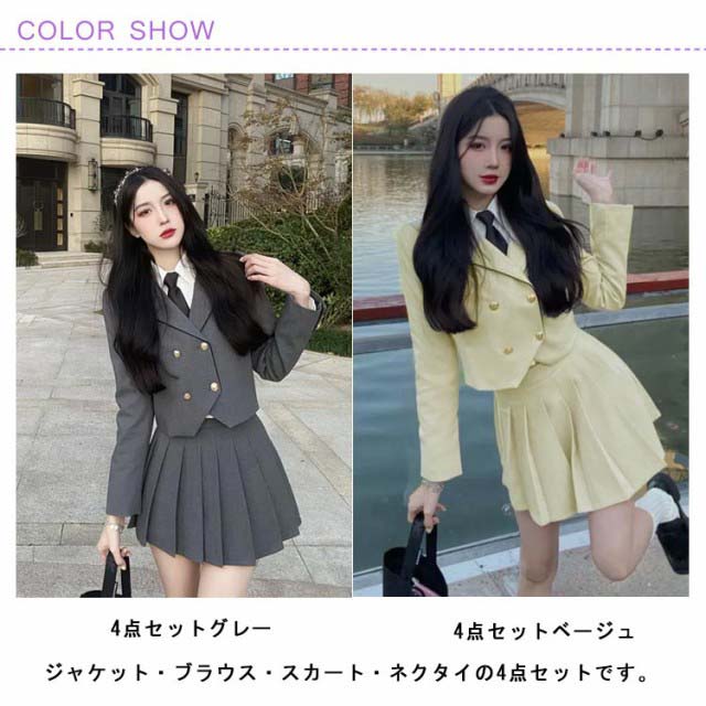 | ジャケット・ブラウス・スカート・ネクタイの4点セットです。 どちらもカッコよさの中に可愛さが感じられるフォーマルスーツです! シックでカッコいい印象のブレザー 生地はさらりとしていて軽い着心地。 着丈は短めに作られており足長効果も得られます。 スカートのラインが美しいのも魅力の一つです。 | |