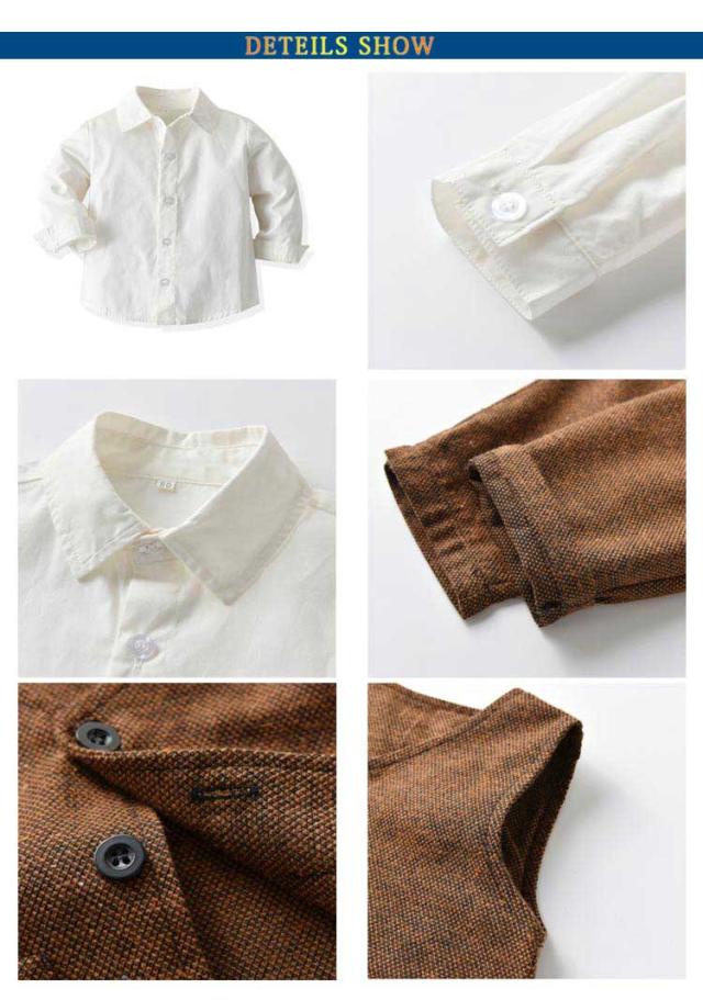 | セット内容:ベスト+シャツ(蝶ネクタイ付き)+ズボン。 蝶ネクタイがクールで、お食い初めや結婚式などのイベントにピッタリのフォーマルカバーオール! ウェストはゴム仕様なので履きやすい。 ちょっと大人っぽいデザインが男の子らしさをアップします。 正面からはちゃんとした大人の感じ、後ろ姿もかっこういい。 かっこいい男の子にぴったりのフォーマルスーツセットです。 結婚式や発表会、七五三などではフルセットでキメて、お出かけやパーティー、お食事会などにも最適! 家族写真、お食い初めなどの記念撮影にもインスタ映えもバッチリ。出産祝い、誕生日、お孫さんのプレゼントなどにも喜ばれます。 | |