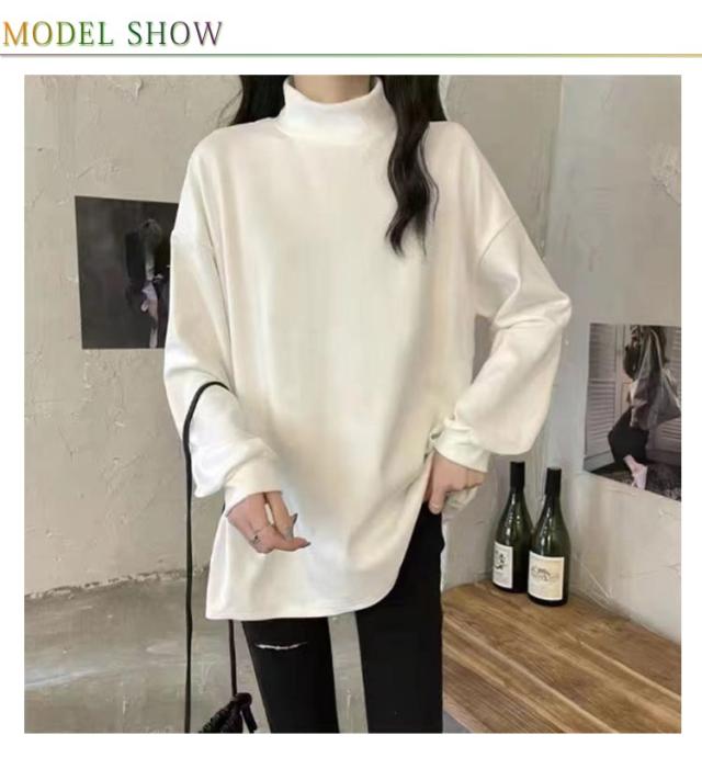 | ハイネックデザインが女性らしいシンプルなカットソー。 暖かい着心地の裏起毛仕様♪ インナーや一枚着として着回しできる優秀なアイテムです。 全体にはゆったりとして、さりげなく体型カバーできます。 大人っぽい雰囲気を変えずに程よくモードを取り入れた長袖tシャツをぜひオススメ。 | |