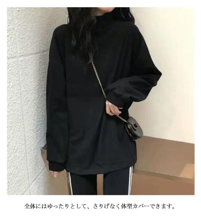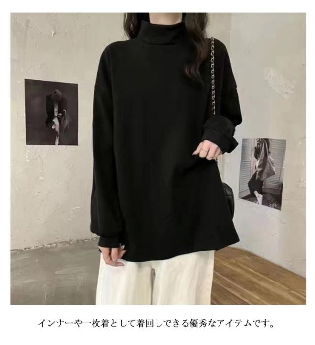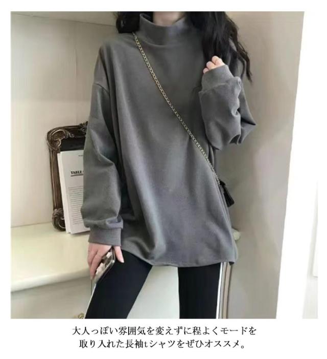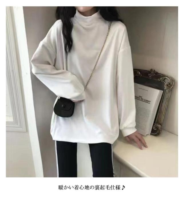 レディース トップス Tシャツ 裏起毛 カットソー 長袖 送料無料 インナー 春 秋 冬 タートルネック 柔らかい生地 無地 レイヤード 重ね着 暖か 温か 母 ママ