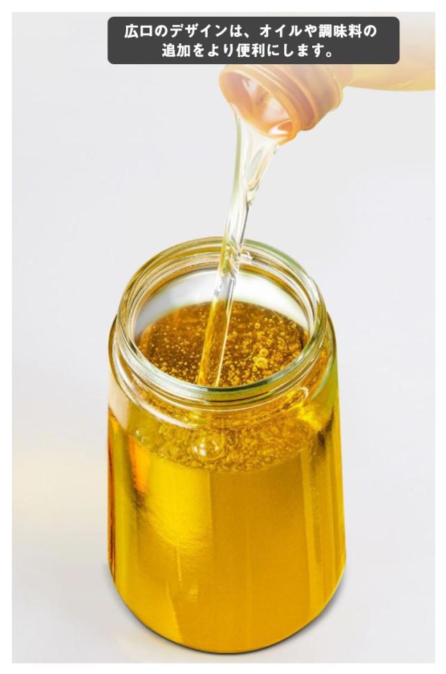 | 【大容量・多用途】 たっぷり700mlも入るガラス製のボトルです。食用油、醤油、酢、ドレッシングなどの液体調味料を加えることができるだけでなく、マイクロソリッドや粉末調味料を追加することもできます。 【自動開閉】 片手で本体を傾けるだけでオイルを出せて、開閉操作の必要がなく調理の効率がアップ!忙しい料理中にも使いやすいです。 【人間工学的デザイン】 広口のデザインは、オイルや調味料の追加をより便利にします。 人間工学の持ち手は手に快適にフィットし持ちやすいです。 透明のガラスで中身が見やすく、オイルの減り具合がひと目でわかります。 | |