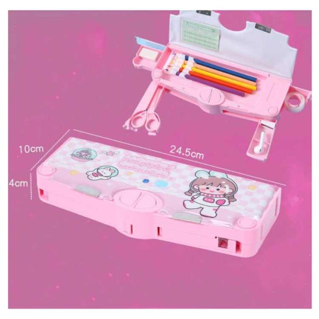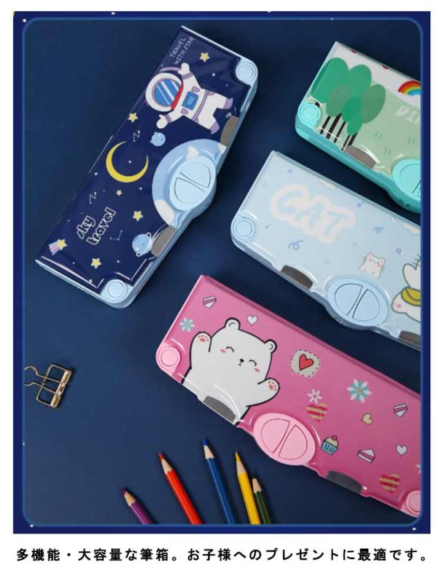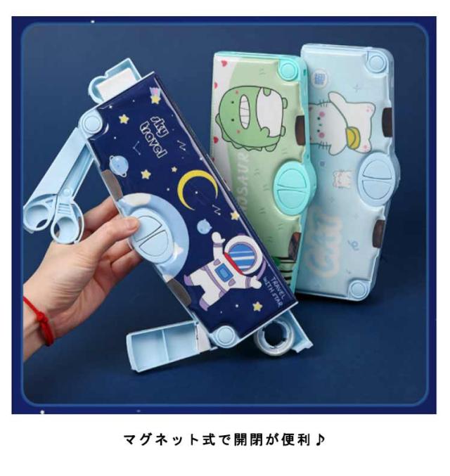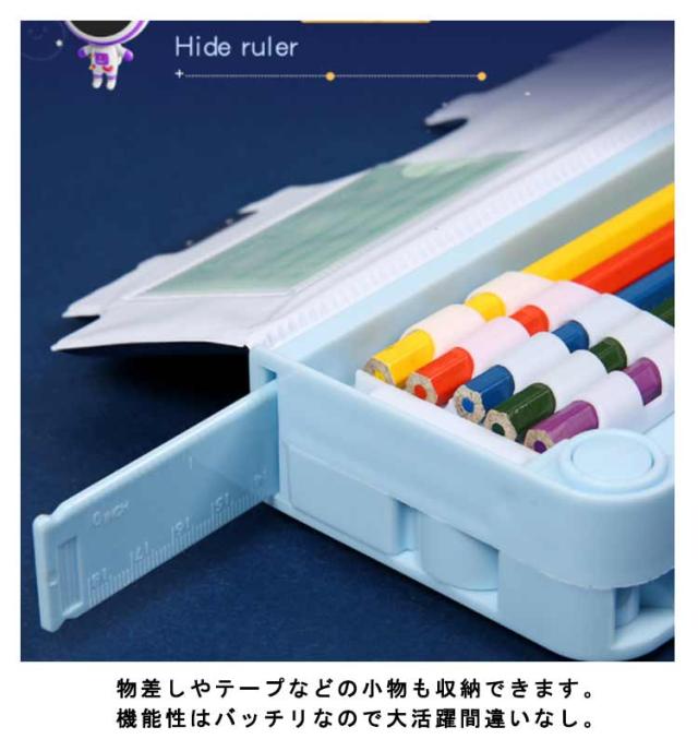 ペンケース ふでばこ 筆箱 ぼたん筆箱 鉛筆削り付き ハサミ 消しゴム 物差し テープ収納リング 筆入れ 時間割表 小物入れ 大容量 多機能 軽量 耐久性 マグネット コンパクト 男の子 女の子 小学生 小学校 ペンケース 文具 鉛筆ケース 誕生日 プレゼント