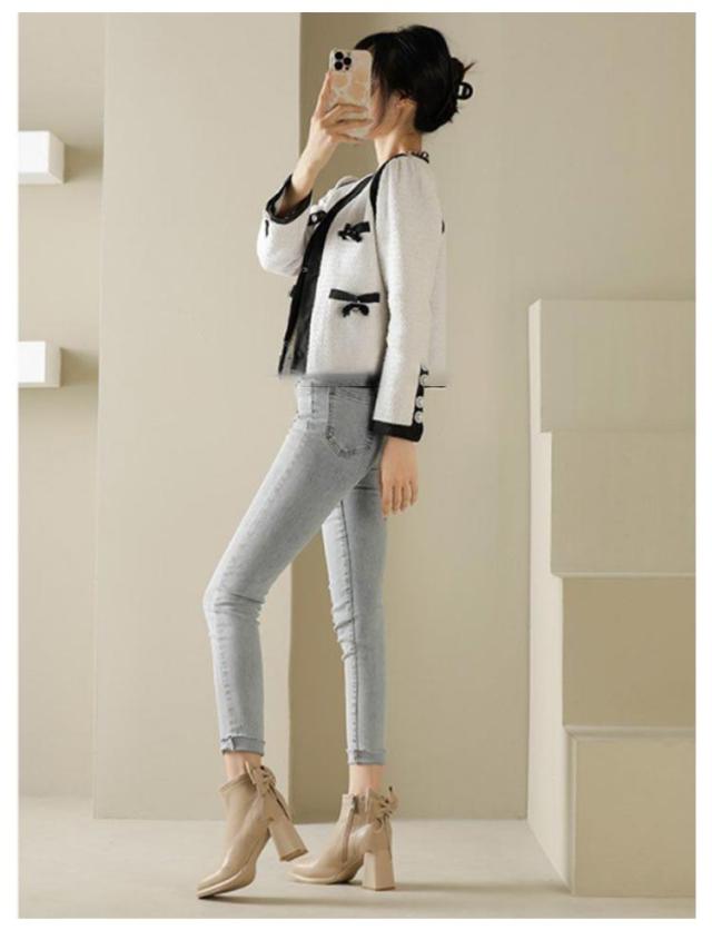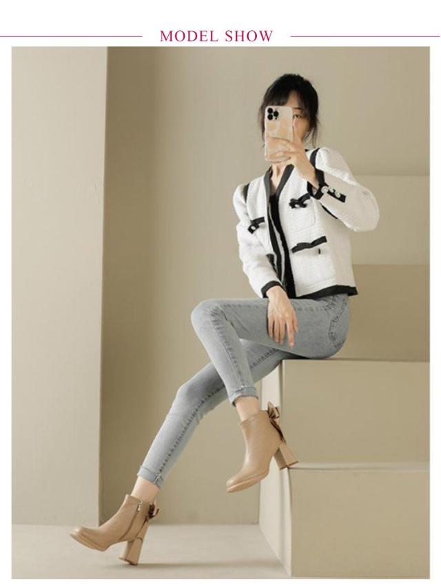 | 足元を大人可愛く仕立ててくれる、バックリボンのショートブーツ♪ アッパーには合成皮革を使用しており、質感がよく足に馴染みやすくなっております。 大人可愛いリボンでバックスタイルがとてもフェミニン。 なんといっても8cmのヒールを機能として持っており、美脚効果と脚長シルエットを実現。 合わせやすい丈感と足首をきれいに魅せる筒周りで幅広いコーディネートにマッチ♪ ボトムスはスキニーデニムパンツを合わせた大人カジュアルコーデに着こなしにぴったりのブーツです。 ミニスカートやショートパンツと合わせたガーリーコーデにも◎ ワンピースと合わせてもかわいいです。 | |