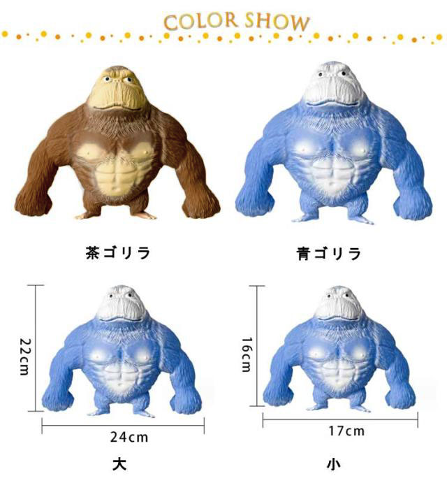 | ストレス解消、ゴリラの独特なデザインとリアルな造形は、あなたに異なる視覚と感覚的な体験を与えます。 二ギニギして癒されたり、お部屋に飾ってみたり、楽しみ方は無限大! 完璧な減圧おもちゃ、ストレスを緩和したり、気持ちを解放したりするのに適しています。 可愛いデザインでプレゼントやギフトに最適! ぷにぷに感触を楽しんでください! | |