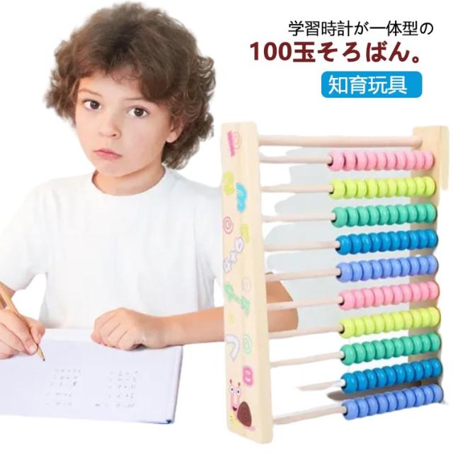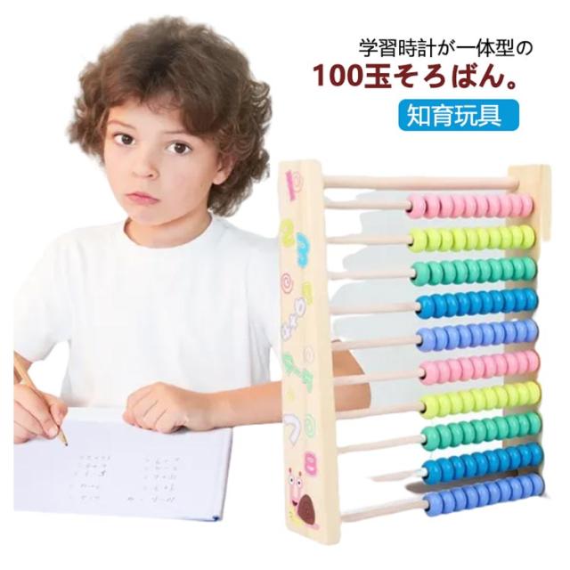 100玉そろばん 百玉そろばん 学習時計 一体型 知育玩具 知育 おもちゃ 室内 遊び 男の子 子供 6歳 小学生 足し算 引き算 掛け算 割り算 教材 知育 木製 幼稚園