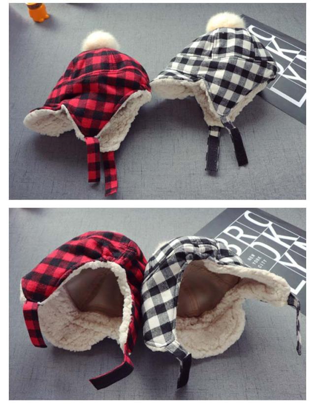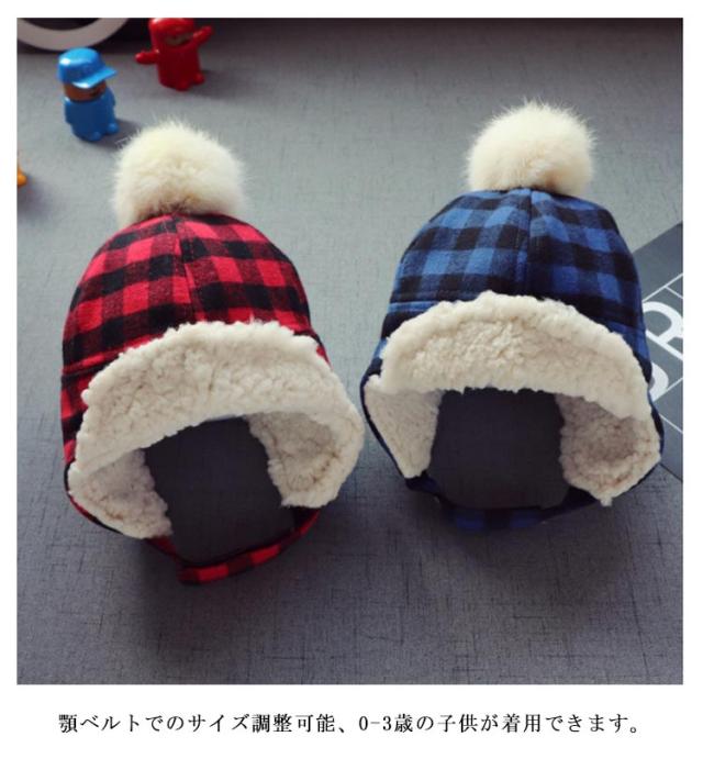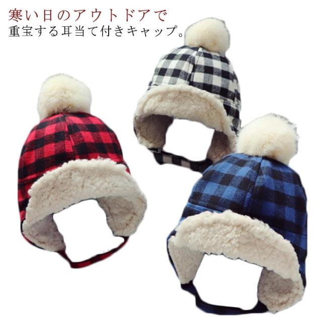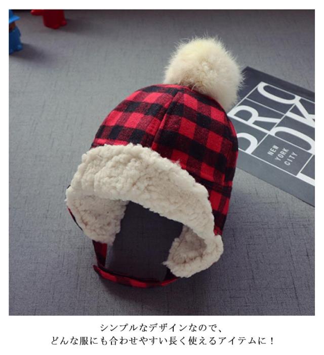 ベビー キッズ 子ども 帽子 ハット パイロットキャップ 裏ボア 耳あて付き チェック柄 フライトキャップ アウトドア キッズ帽子 子供 防寒 秋 冬 通学 もこもこ ふわふわ 雪遊び 送料無料